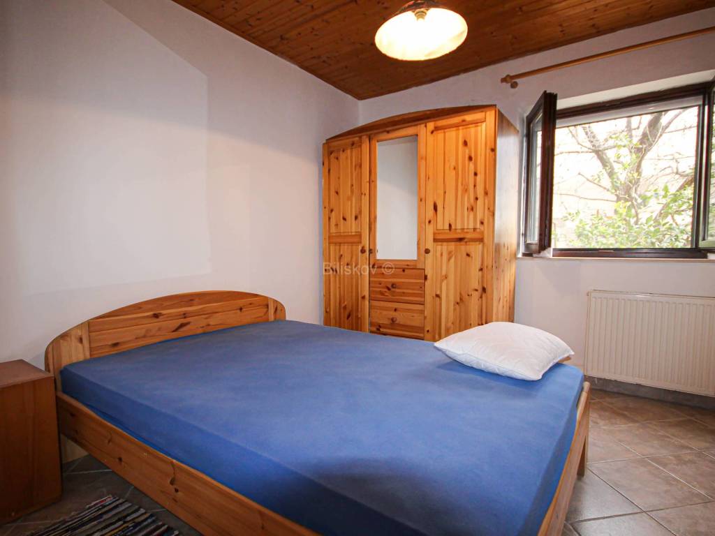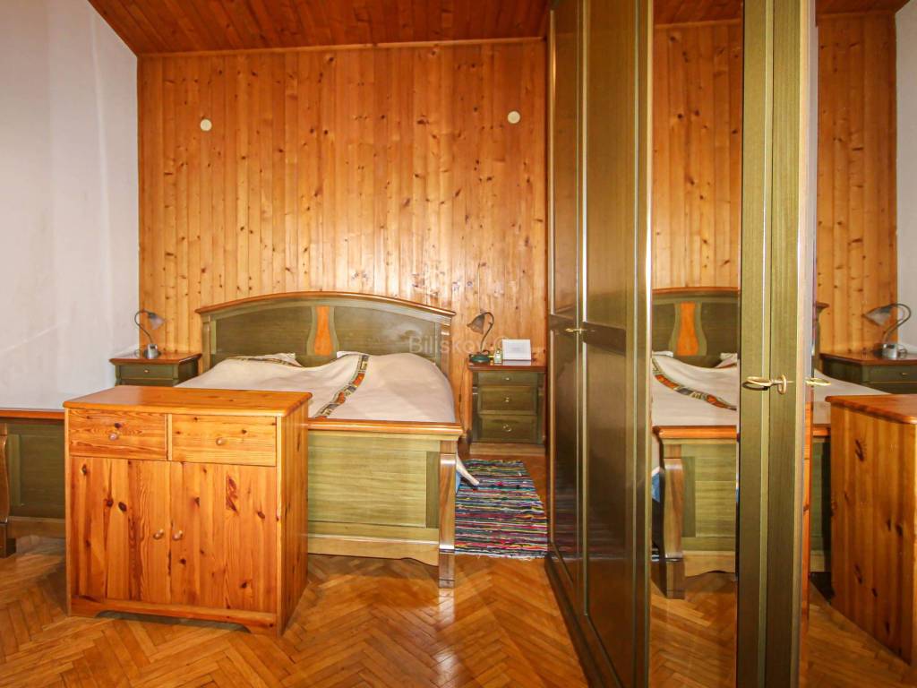 Na prvom katu se nalazi stan koji se sastoji od dnevnog boravka, kuhinje sa blagovaonicom, tri spavaće sobe te dvije kupaonice.