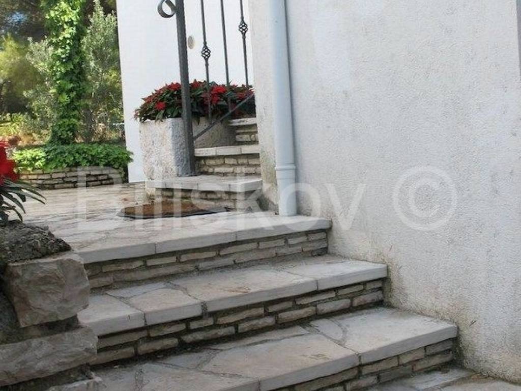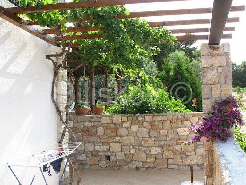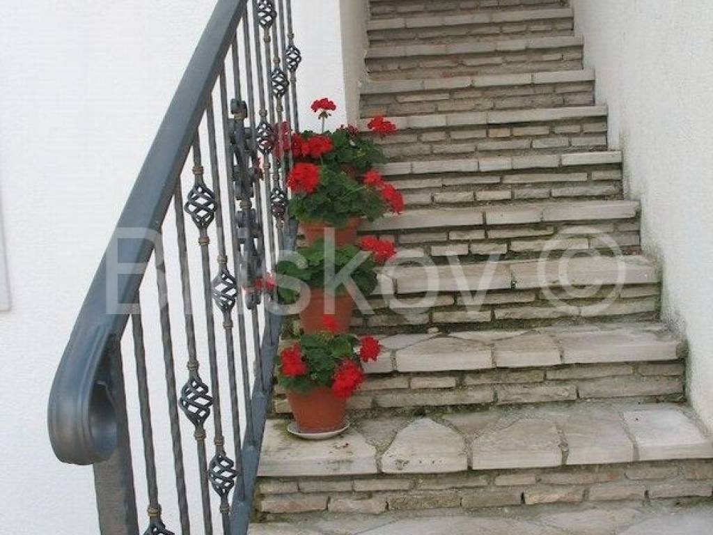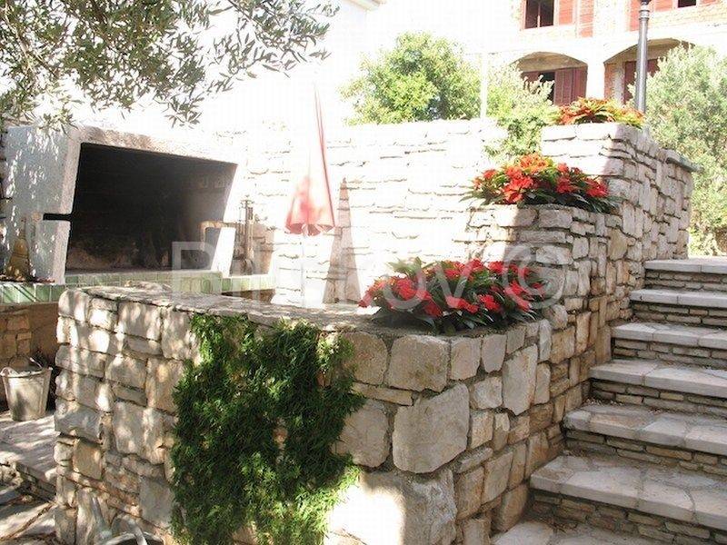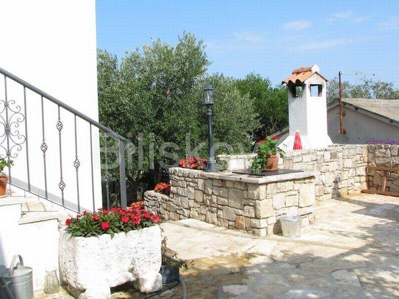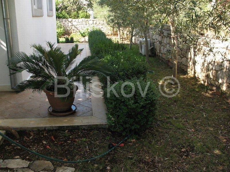 Okućnica je uređena, dijelom popločana, dijelom cvjetnjak. Velika, kultivirana okućnica sa mediteranskim raslinjem pruža mogućnost zaštite privatnosti, iako je smještena u centru, te blizini mora.