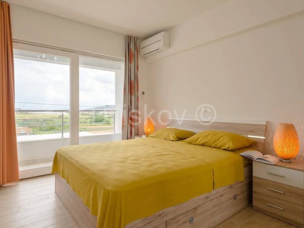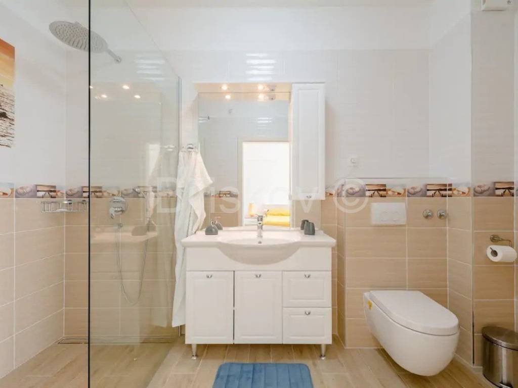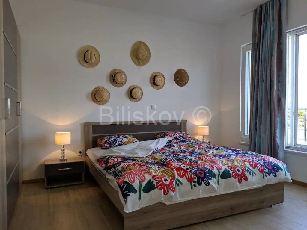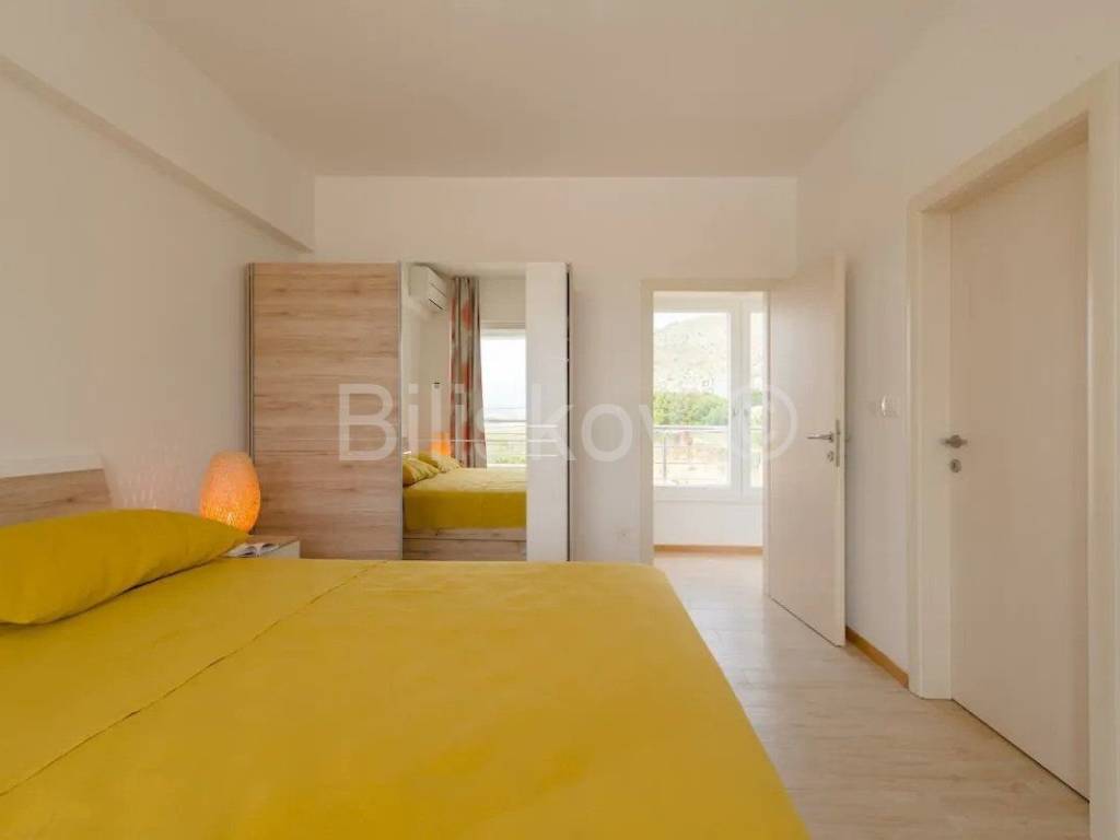 Trogir, Seget Gornji, troetažna dizajnerska vila ukupno korisne površine 240m2 s parkingom i bazenom. Prva etaža sastoji se od kuhinje s trpezarijom i dnevnim boravkom, wc-a, te velikom terasom s izlazom na bazen. Tri spavaće sobe od kojih svaka ima svoje kupatilo i balkon s pogledom na more. Nalaze se na drugoj etaži. Treća etaža sastoji se od velike terase s tušem i vrtom te omogućuje trenutke neometanog opuštanja. Kuća je klimatizirana(svaka prostorija), dizajnerski uređena i dostupna dugoročno. Od plaže udaljena je 300m, grad Trogir je udaljen 900m. Polog iznosi jednu mjesečnu najamninu. Agencijska provizija iznosi jednu mjesečnu najamninu uvećanu za pripadajući PDV. www.biliskov.com ID:10807-1