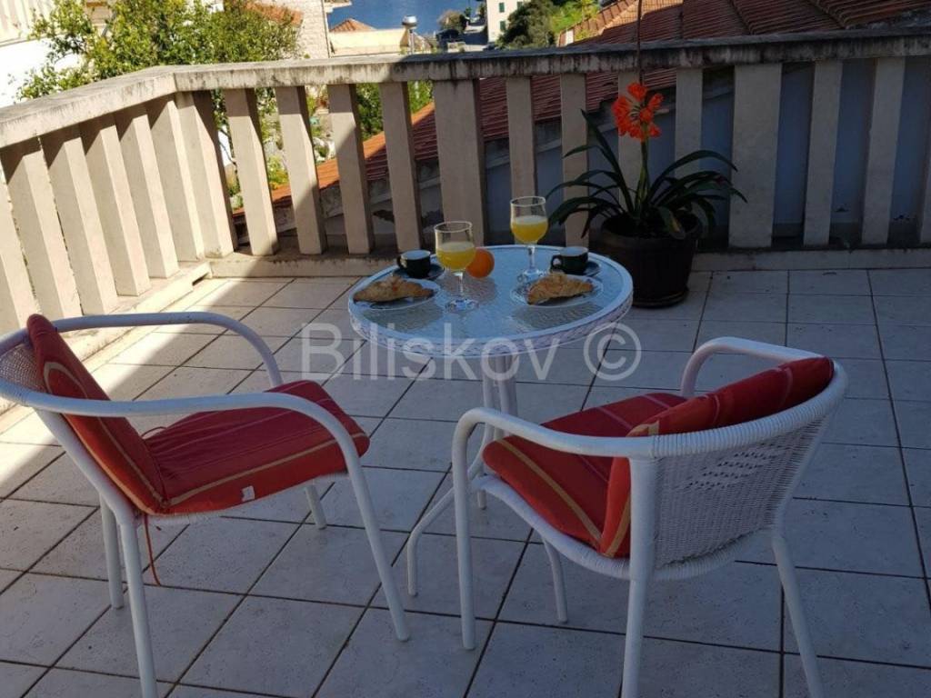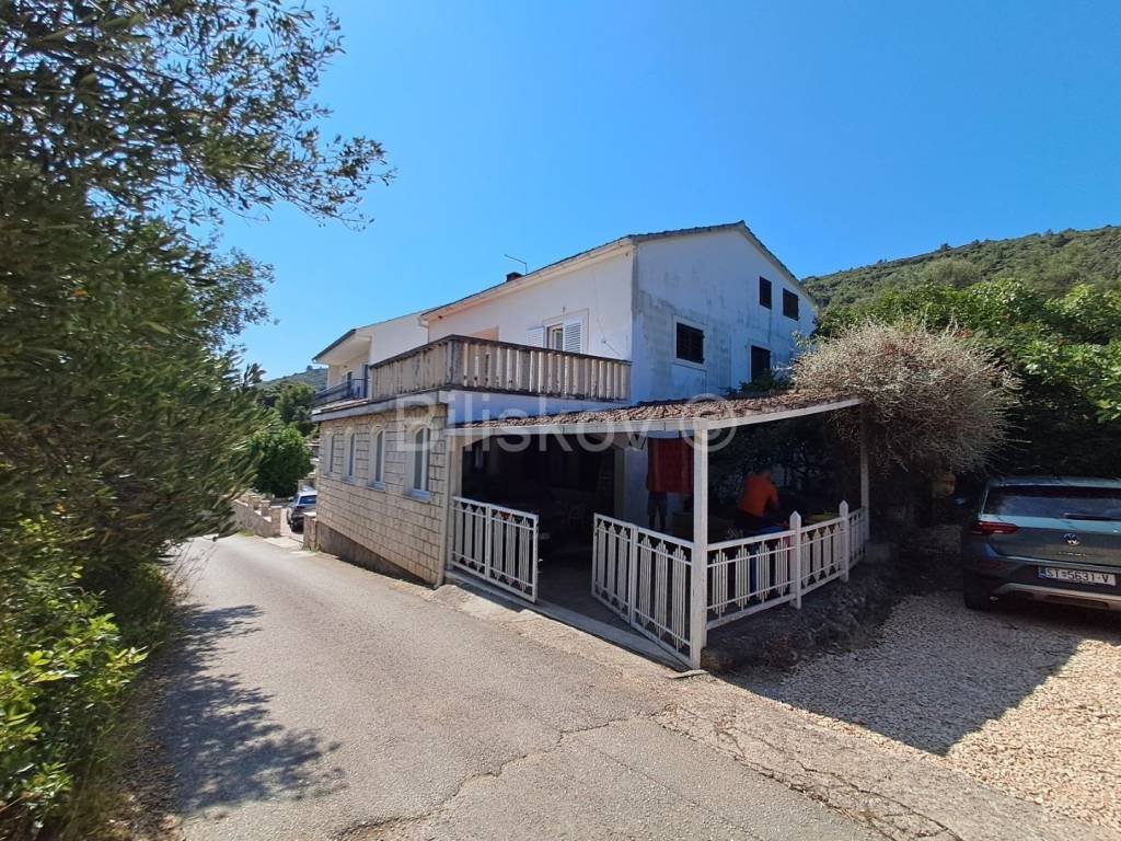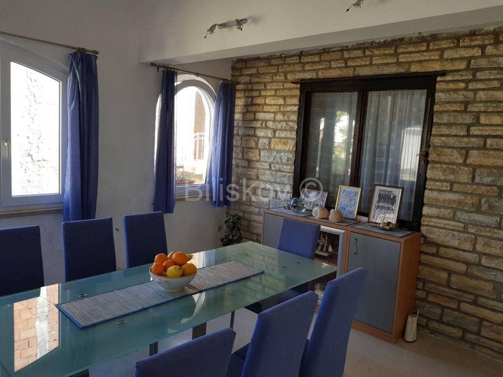Kuća je useljiva, namještena i održavana. Nalazi se oko 150 m od mora, te ima djelomičan pogled.