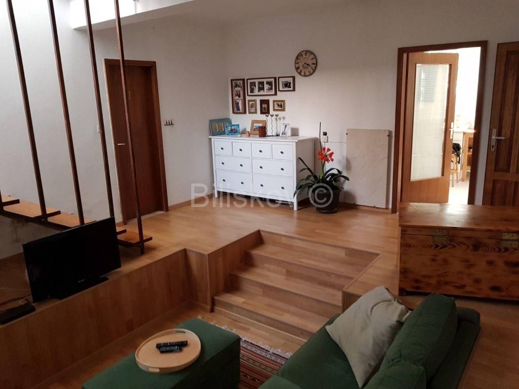 Potkrovna etaža ima vlastiti ulaz kojem se pristupa vanjskim stepeništem. Potkrovlje je trenutno neuređeno, ali ima visinu te se može napraviti dodatni apartman površine 50-ak m2.
