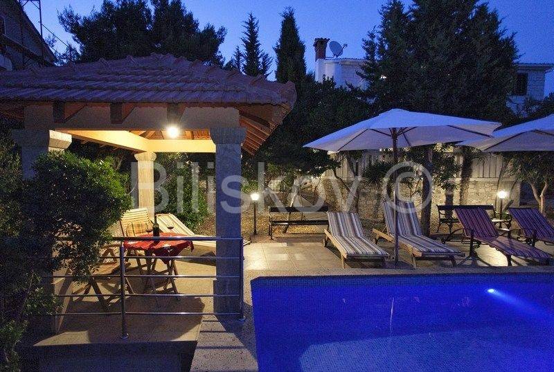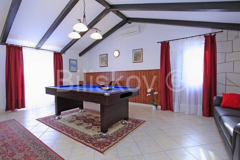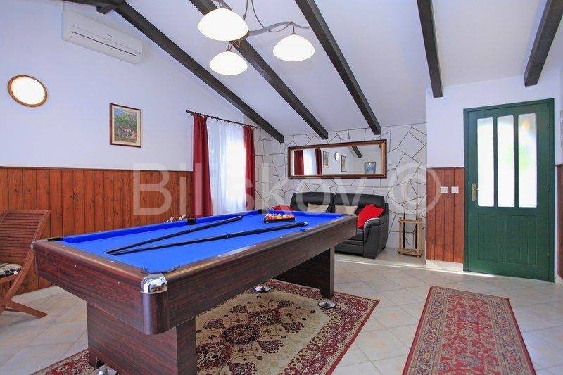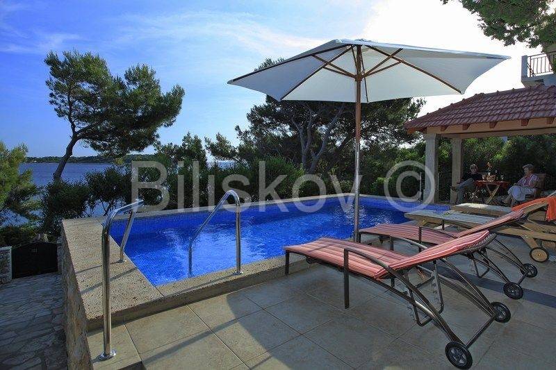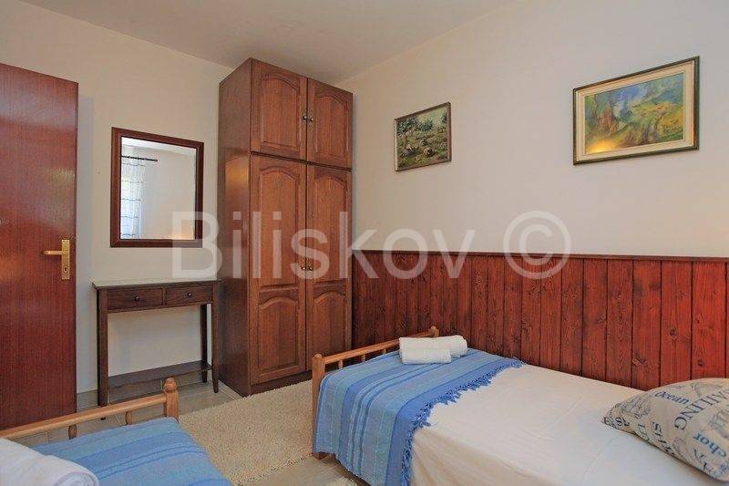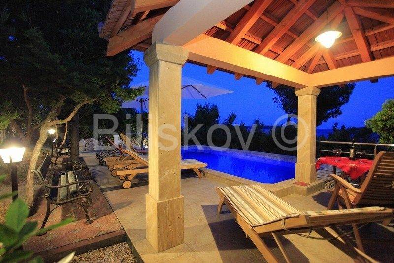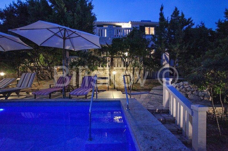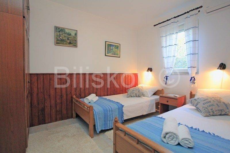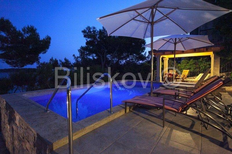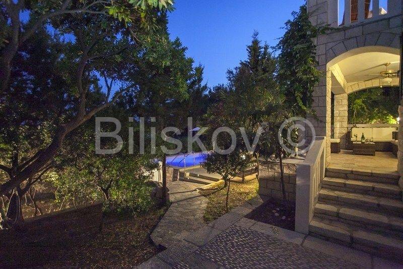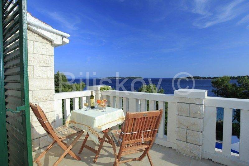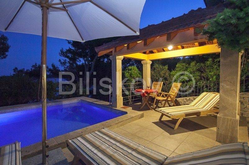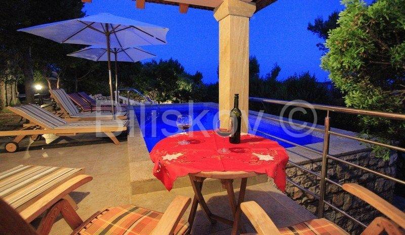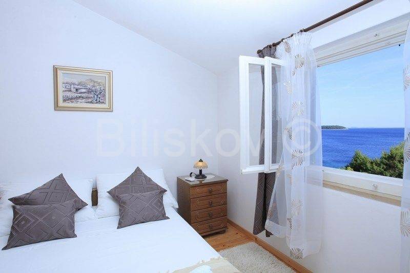 kamena kuća u prvom redu uz more s otvorenim pogledom na Lastovo. U prizemlju se nalazi kuhinja s trpezarijom i kaminom, i kupatilo, a ispred na nižoj kaskadnoj terasi se nalazi bazen. Na 1.katu je dvosoban stan s terasom, i iza kuće su dva parkirna mjesta. Okućnica je kultivirana autohtonim biljem, a cijela okućnica je koncipirana da pruža intimu, sa više mjesta za sjedenje i uživanje i prekrasnom pogledu. Ispred kuće je betonirani plato za sunčenje i vez za brod.