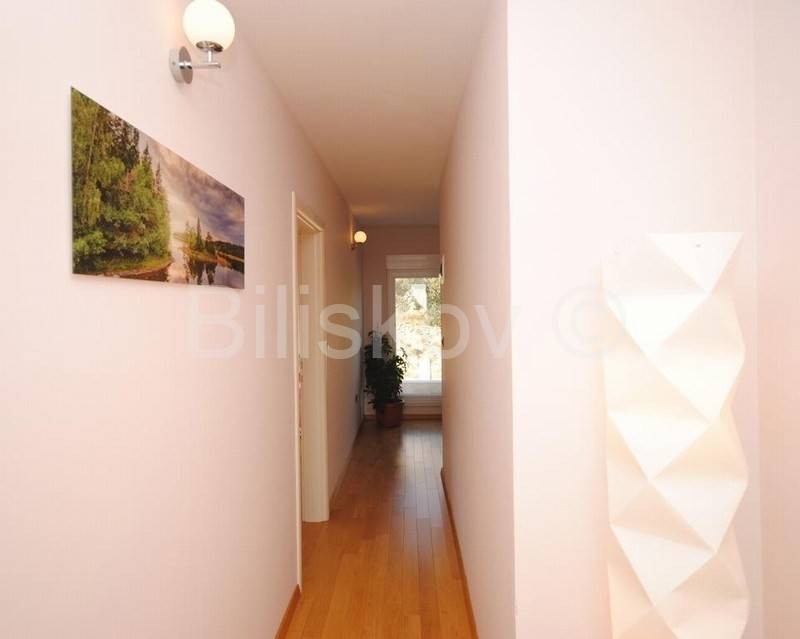 U prizemlju se nalazi konoba s kominom, igraonica, praonica, vinoteka, kupaonica i ispred se nalazi bazen veličine 5 x 8 metara koji pruža potpunu intimu. Na prvom katu se nalazi kuhinja s blagovaonicom, veliki dnevni boravak, wc-a i cijelom dužinom kuće se proteže velika terasa s prekrasnim pogledom na zelenilo, Split i more. Na drugom katu su tri spavaće sobe i kupaonica.