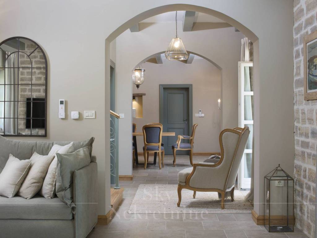 U prizemlju vile nalazi se velika prostorija koja lukovima odvaja prostrani dnevni boravak, blagovaonicu i kuhinju. U prizemlju se nalaze i dvije spavaće sobe, svaka sa svojom privatnom kupaonicom te gostinjski wc. Na 1. katu nalaze se tri spavaće sobe od kojih svaka ima svoju privatnu kupaonicu.