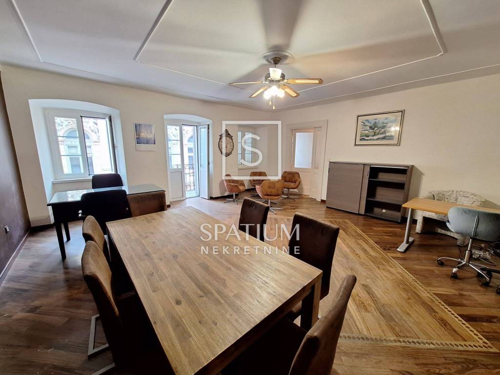 CENTAR, u ponudi imamo poslovni prostor na samom Korzu. Sastoji se od tri velika ureda od kojih jedan ima izlaz na balkon, sobe za sastanke, velikog hodnika koji može biti recepcija ili čekaonica te kupaonice. Nalazi se na drugom katu. Nova stolarija, grijanje/hlađenje klima uređaji.