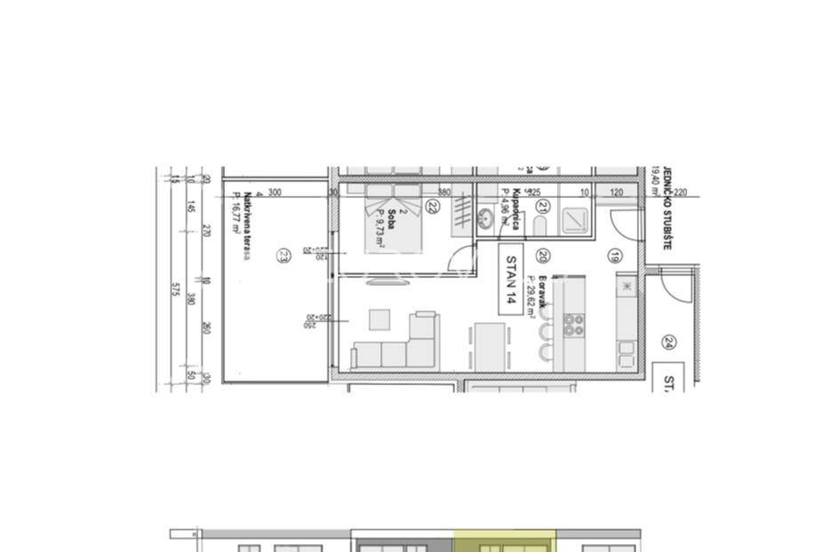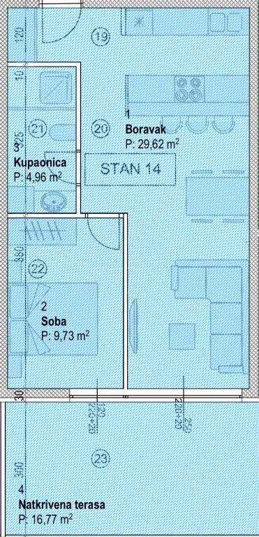 Predstavljamo vam projekt moderne novogradnje u novoizgrađenom dijelu Povljane na otoku Pagu. Zgrada se sastoji od ukupno 15 stambenih jedinica raspoređenih na 3 etaže. Udaljena je svega 350 metara od mora, lokalnih plaža i ostalih sadržaja potrebnih za kvalitetan i ispunjen život ili odmor.STAN S14 / 2. kat / 52,69 m²Stan S13 se nalazi na 2. katu zgrade te ima neto korisnu površinu od 52,69m². Sastoji se od otvorenog prostora dnevnog boravka, kuhinje i blagovaonice (29,62 m²), spavaće sobe (9,73 m²), potpuno opremljene kupaonice (4,96 m²) te natkrivene terase (16,77m2) s koje se pruža lijep pogled. Uz to, stanu pripada i jedno vanjsko parkirno mjesto.Planirano useljenje je 04/2027, zgrada je trenutno u početnim fazama radova.Zgrada će biti opremljena kvalitetnim materijalima, od čega valja izdvojiti:Multi-split klima uređaji u sobama i dnevnim boravcimaKvalitetna vanjska PVC Low-E stolarijaProtuprovalna i protupožarna vrataStaklene ograde na terasamaI još mnogo togaPovljana je šarmantno dalmatinsko mjesto na otoku Pagu, poznato po dugim pješčanim plažama i kristalno čistom moru. Idealan je izbor za nekretnine za odmor ili turistički najam — autentičan dalmatinski ugođaj, prostrane terase i blizina lokalnih restorana. Dobra prometna povezanost cestom te blizina važnijih otočnih i kopnenih odredišta čine Povljanu privlačnom investicijskom lokacijom na Pagu.Obratite nam se s povjerenjem za više informacija i dogovor razgledavanja.