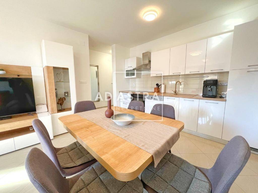 Na mirnoj lokaciji u Ližnjanu, prodaje se ovaj moderno uređen dvosoban stan ukupne neto površine 84,38 m2. Smjestio se na prvom katu stambene zgrade novije gradnje.