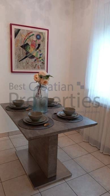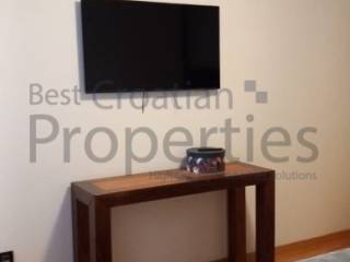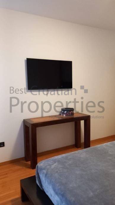 Opremljen je svim potrebnim aparatima (klima uređaj, hladnjak s ledenicom, protuprovalna vrata, električne rolete, video portafon, perilica posuđa, perilica rublja...)