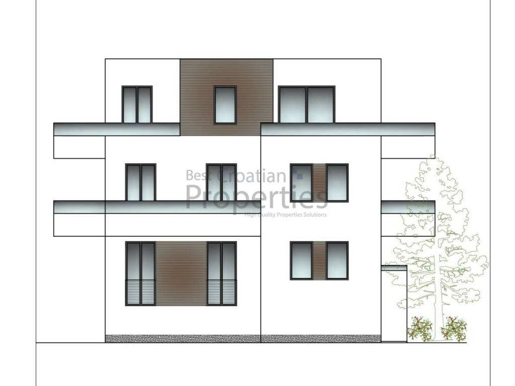 Ovaj moderni objekt visoke klase unutarnjeg uređenja izveden je s velikom pažnjom pri odabiru materijalai rasporeda stanova. Predivan i moderan izgled zgrade.