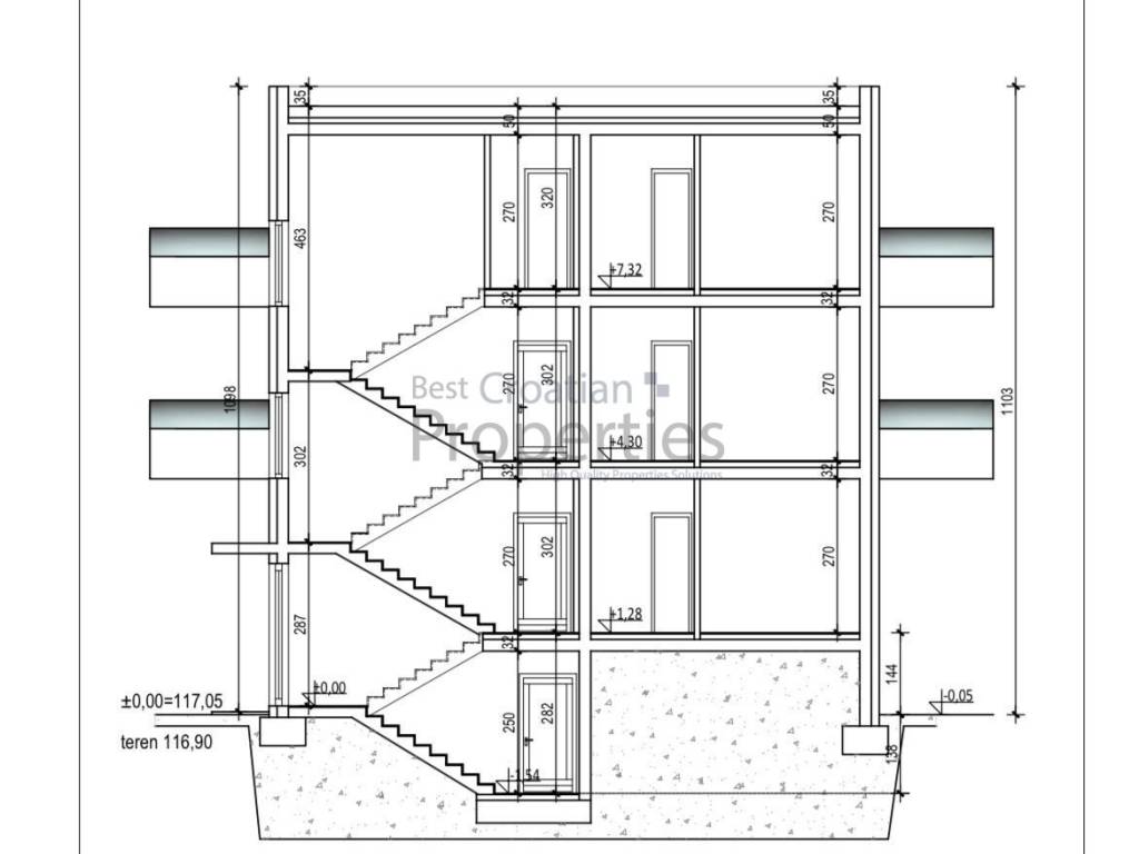 Radi se ostanu A3 na zadnjem katu zgrade (penthaus) koja je trenutno u fazi gradnje. Zgrada će se ukupno sastojati od podruma sa spremištima, prizemlja , prvog kata i uvučenog kata sa ukupno 3 stambenih jedinica.