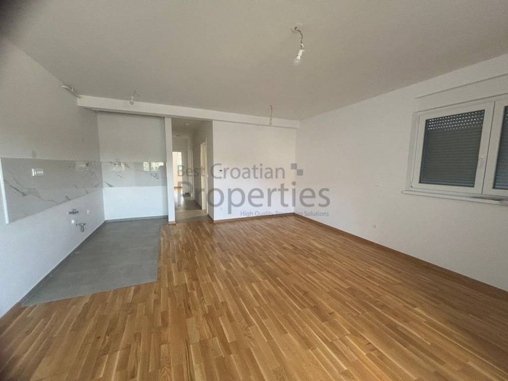 Prodaje se izvrstan trosoban stan, stambene površine 55,75 m2, koji se sastoji od hodnika, kupaonice,dvije sobe, dnevnog boravka sa kuhinjom i blagovaonicom i sporednog dijela: loggie površine 4,60 m2 kojemu pripada spremište oznake SP4 u podrumu površine 2,9 čm, kućni vrt oznake KV1 površine 83,70 čm i vanjsko parkirališno mjesto oznake PM4 površine 12,50 čm, sveukupno 159,45 m2.