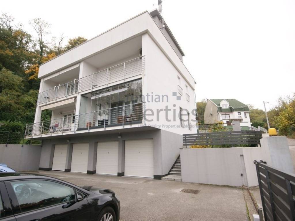 Ovaj prostran i svijetao četverosoban stan od netto 108,44 m2 nalazi se na 1. katu novije stambene zgrade sagrađene u naselju Bijenik, u ulici Podfuščak.