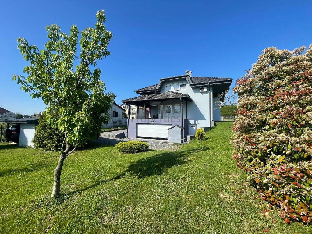 Kuća je koncipirana na dvije etaže povezane centralnim stubištem, s ukupnom neto stambenom površinom od 315m2 te s pripadajućim dvorištem, velikom garažom i predivnim vrtom.