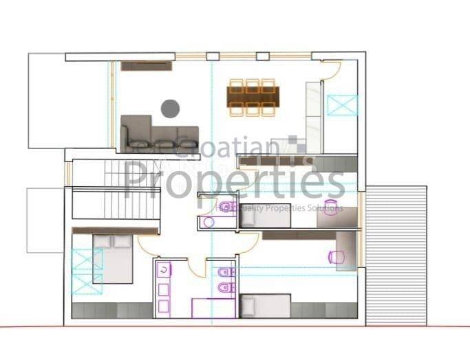 Ulazni prostor Dnevna soba + blagovaonica Kuhinja Kupaonica 3 x Spavaća soba Ostava WC