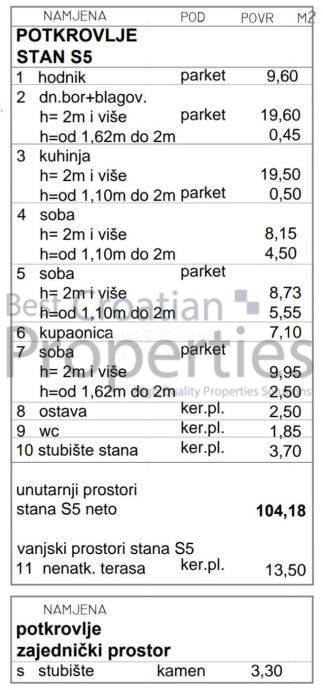 UKUPNO STAMBENO =107,38 m2 Vanjsko parkirno mjesto 12,5 m2UKUPNO OBRAČUNSKO: 110,5 m2