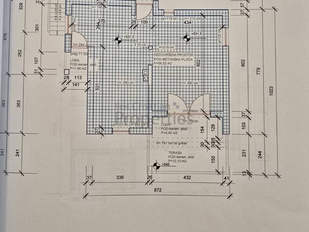 Površina kuće: 230 m Površina zemljišta: 361 m Udaljenost od centra: 100 m Stanje: Useljivo prizemlje i suteren + roh bau potkrovlje