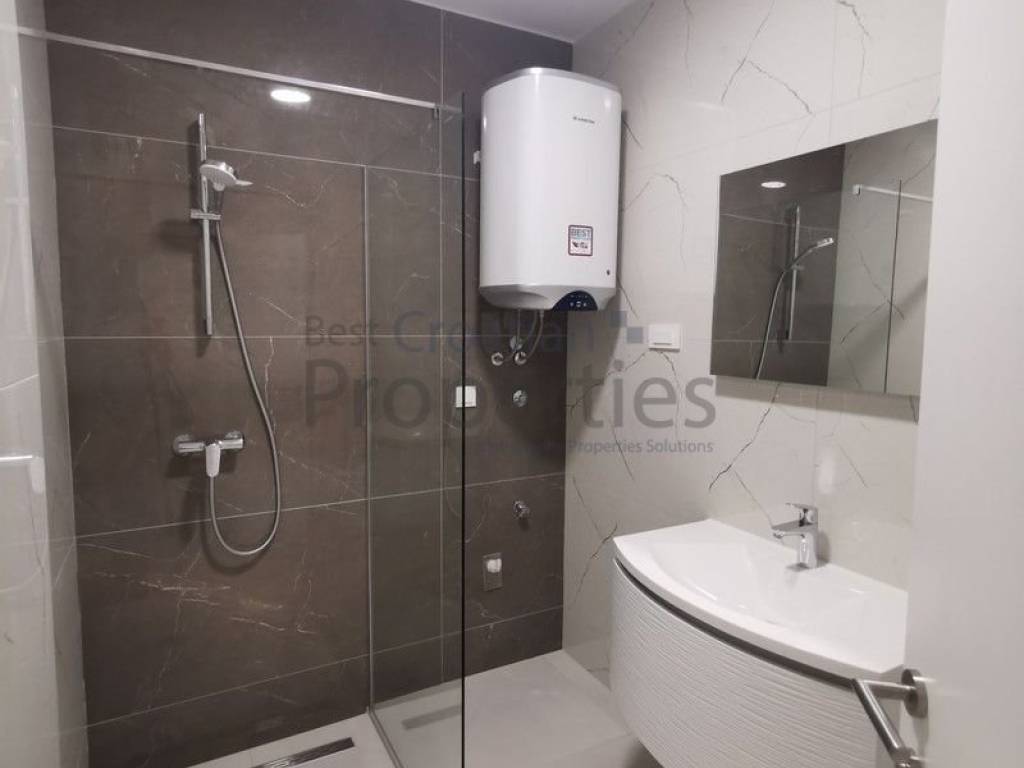 -Kupaonica - WC školjka s ugradbenim vodokotlićem GROHE, kupaonski blok s ogledalom VOXORT, tuš s bočnom staklenom stranicom, priključak za perilicu rublja, bojler za toplu vodu ARISTON 80L kupaonice i kuhinje, špine marke Hansgrohe;