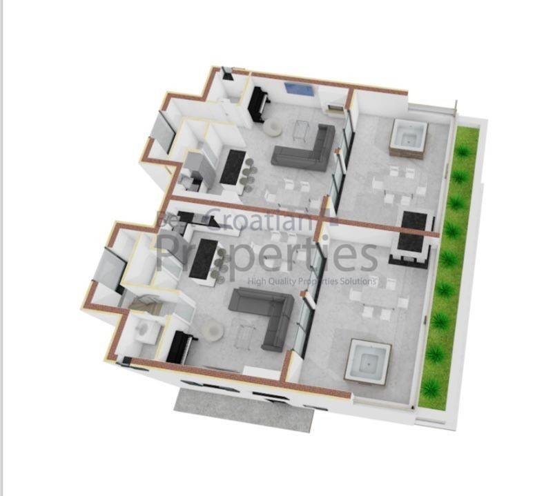 Na ovoj atraktivnoj lokaciji samo 150 metara od mora nalazi se ovaj projekt koji se sastoji od četiri izuzetno luksuzna apartmana visokokvalitetne gradnje, na odličnoj poziciji i s prekrasnimpogledom.