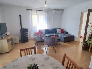Prvi kat: stan ukupne površine 80 m, sastoji se od 3 spavaće sobe, dnevnog boravka s kuhinjom, dvijekupaonice i balkona