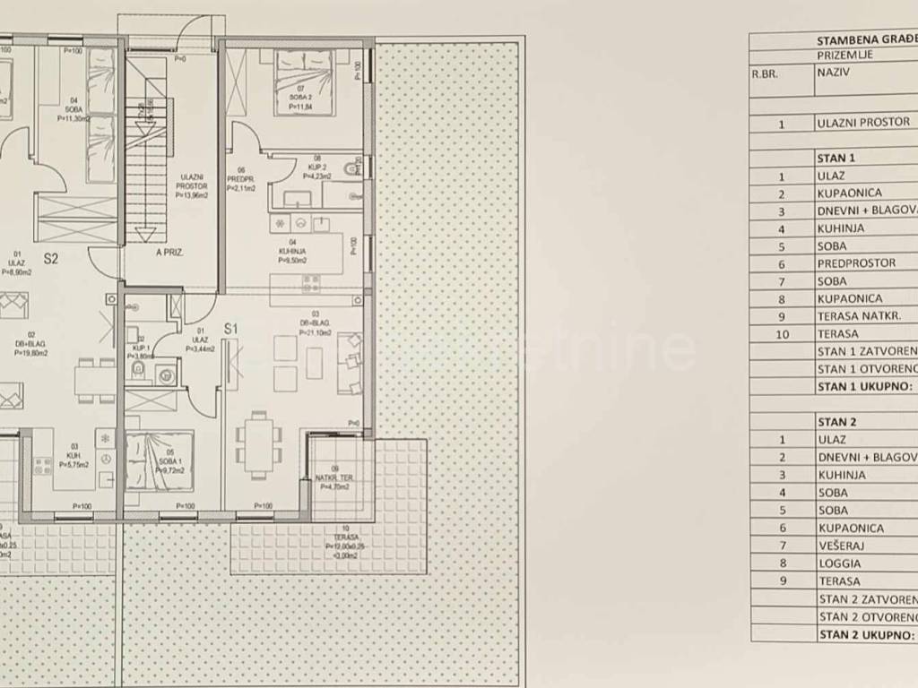 Predstavljamo stan u prizemlju koji sadrži: ulazni prostor, kuhinju, dnevni boravak i blagovaonicu, dvije spavaće sobe, kupaonicu, vešeraj, loggiu i terasu, sveukupno neto korisne stambene površine 66,63 m2.