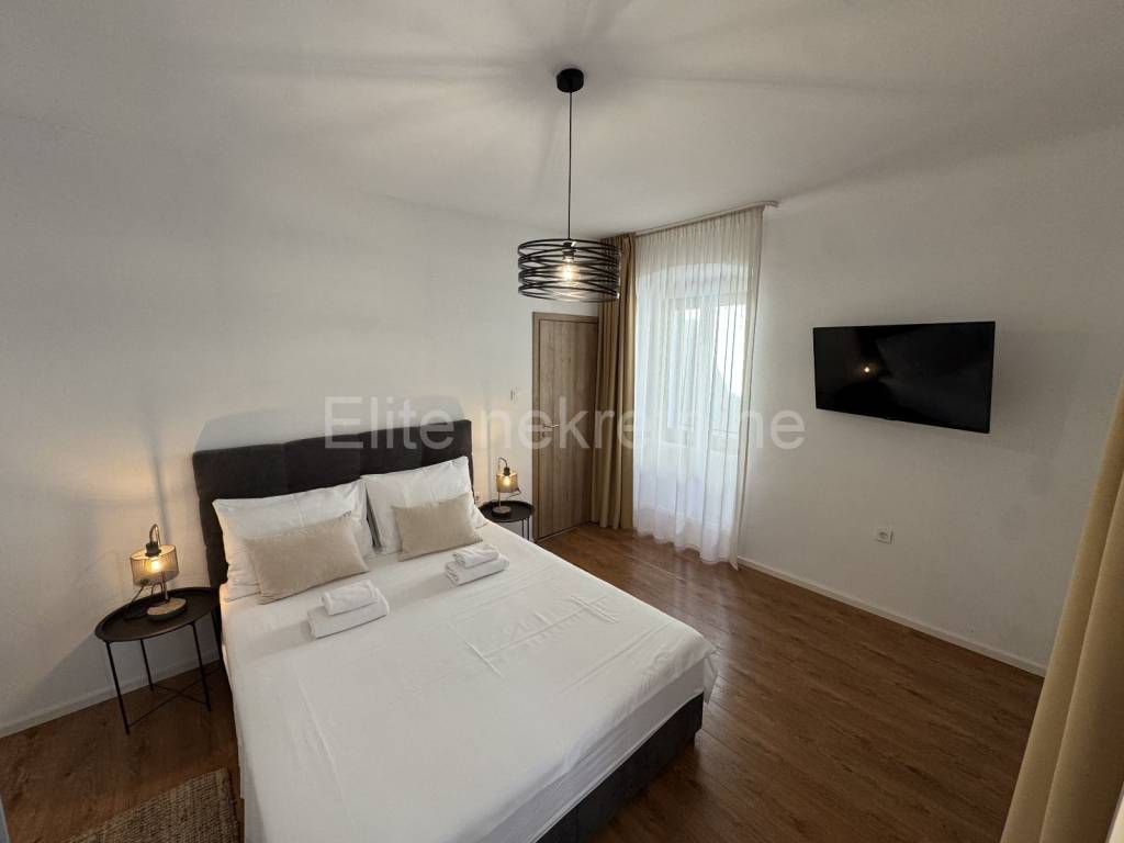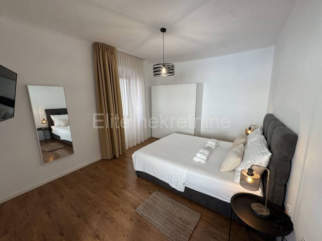 Posredujemo u prodaji apartmana koji se nalaze u strogom centru grada, s pogledom na Korzo, dok se ulaz u zgradu nalazi samo desetak metara od same šetnice. Ukupna površina stana je 82 m, a prostor je podijeljen na dva odvojena apartmana koji dijele zajednički ulazni hodnik, opremljen pametnim bravama i video nadzorom za dodatnu sigurnost.Svaki apartman ima zasebnu spavaću sobu i dnevni boravak s potpuno opremljenom kuhinjom te kaučem na razvlačenje, što omogućava smještaj do 4 osobe po apartmanu. Oba apartmana sadrže po dvije televizije, s pristupom zemaljskoj i satelitskoj TV, kao i Netflixom u dnevnom boravku, pružajući bogat izbor zabavnog sadržaja.