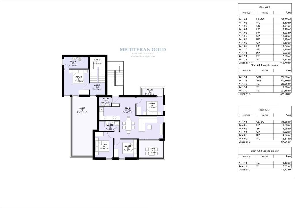 A4.1 162m2, prvi i drugi kat, dvoetažan, trosoban stan +2 parkirna mjesta = 534.600€