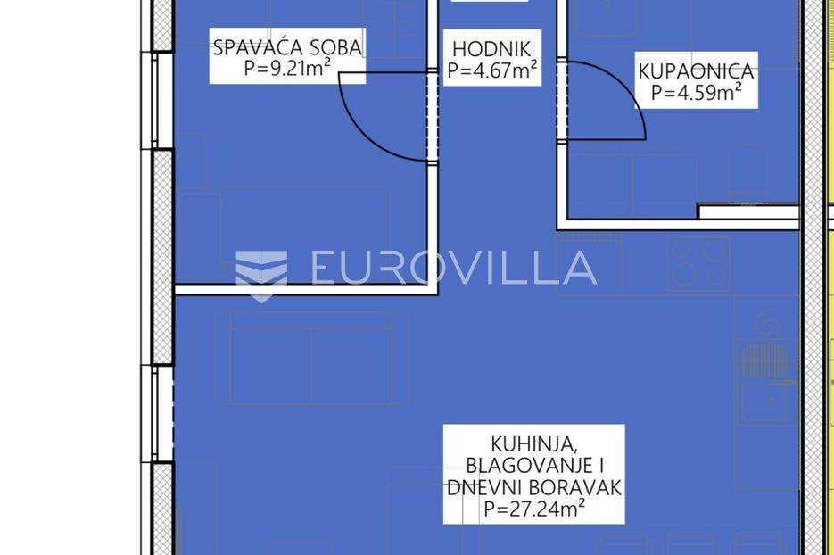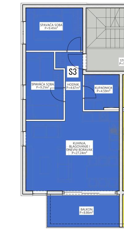 Predstavljamo Vam projekt novogradnje u Povljani na otoku Pagu koji se sastoji od zgrade sa 6 stambenih jedinica. Zgrada se nalazi u novoizgrađenom dijelu Povljane, a u blizini njene lokacije možemo pronaći sve sadržaje potrebne za kvalitetan i ispunjen život ili odmor. Također, od mora je udaljena svega 300 metara.STAN S3 / 1. KAT / 64,53m2Stan S3 se nalazi na 1. katu zgrade te je ukupne neto korisne površine 64,53m2. Sastoji se od otvorenog prostora kuhinje, blagovaonice i dnevnog boravka (27,24m2), hodnika (4,67m2), kupaonice (4,59m2), dvije spavaće sobe (9,41m2 i 9,21m2) te lođe s koje se pruža predivan pogled na more (8,86m2). Stanu uz to pripada i jedno vanjsko parkirno mjesto.Sva dokumentacija je uredna, a useljenje se očekuje do 05/2026. Zgrada se trenutačno nalazi u završnim fazama opremanja.Pri izgradnji korišteni su visoki standardi gradnje i opremanja, od čega izdvajamo:Vrhunska PVC troslojna stolarijaPodno grijanje u svim prostorijamaKlima jedinice u svim sobama i dnevnim boravcimaProtuprovalna i protupožarna vrataVisokokvalitetna keramika te sanitarije renomiranih proizvođača.I još mnogo toga..Povljana na Pagu nudi miran i ugodan život uz more, idealan za obitelji i odmor. Blizu su prekrasne pješčane plaže i sve potrebne sadržaje za svakodnevni život. Lokacija je atraktivna za investiciju i dugoročno stanovanje uz more.Za više informacija i dogovor o razgledavanju, budite nas slobodni kontaktirati.