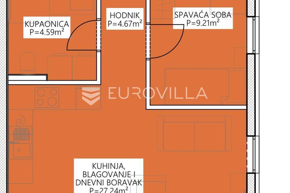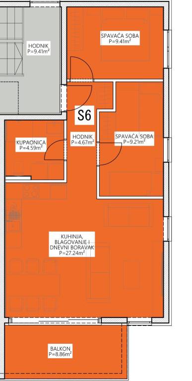 Predstavljamo Vam projekt novogradnje u Povljani na otoku Pagu koji se sastoji od zgrade sa 6 stambenih jedinica. Zgrada se nalazi u novoizgrađenom dijelu Povljane, a u blizini njene lokacije možemo pronaći sve sadržaje potrebne za kvalitetan i ispunjen život ili odmor. Također, od mora je udaljena svega 300 metara.STAN S6 / 2. KAT / 64,53m2Stan S6 se nalazi na 2. katu zgrade te je ukupne neto korisne površine 64,53m2. Sastoji se od otvorenog prostora kuhinje, blagovaonice i dnevnog boravka (27,24m2), hodnika (4,67m2), kupaonice (4,59m2), dvije spavaće sobe (9,41m2 i 9,21m2) te lođe s koje se pruža predivan pogled na more (8,86m2). Stanu uz to pripada i jedno vanjsko parkirno mjesto.Sva dokumentacija je uredna, a useljenje se očekuje do 05/2026. Zgrada se trenutačno nalazi u završnim fazama opremanja.Pri izgradnji korišteni su visoki standardi gradnje i opremanja, od čega izdvajamo:Vrhunska PVC troslojna stolarijaPodno grijanje u svim prostorijamaKlima jedinice u svim sobama i dnevnim boravcimaProtuprovalna i protupožarna vrataVisokokvalitetna keramika te sanitarije renomiranih proizvođača.I još mnogo toga..Povljana na Pagu nudi miran i ugodan život uz more, idealan za obitelji i odmor. Blizu su prekrasne pješčane plaže i sve potrebne sadržaje za svakodnevni život. Lokacija je atraktivna za investiciju i dugoročno stanovanje uz more.Za više informacija i dogovor o razgledavanju, budite nas slobodni kontaktirati.