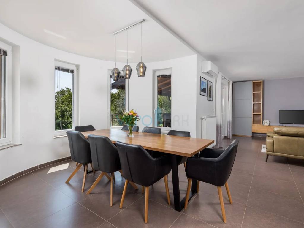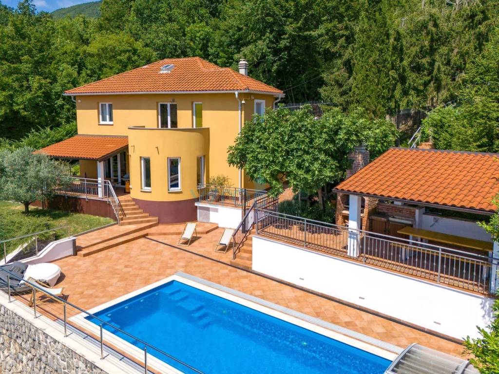 Opatija, okolica, luksuzna obiteljska vila s fantastičnim pogledom na Kvarner i otoke. Ističe se jedinstvenim dizajnom koji povezuje interijer prema vanjskom prostoru. Nalazi se poviše grada Opatija, u mirnom okruženju obiteljskih kuća i vila.