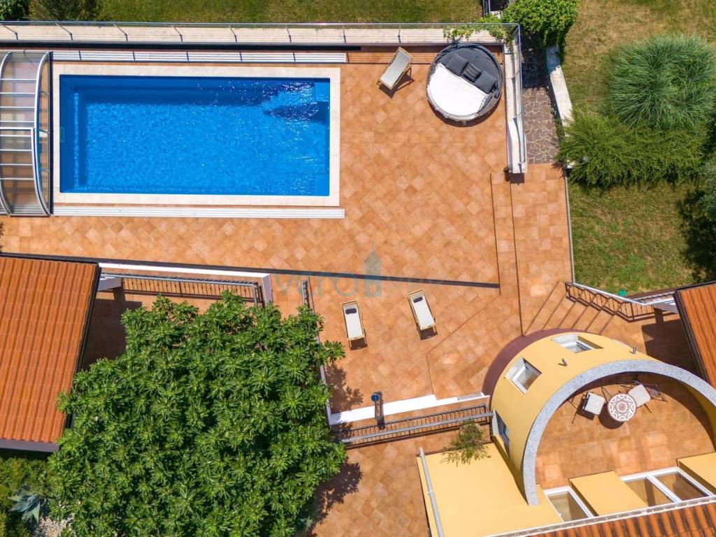 Vanjski prostor vile je fantastično koncipiran na način da se sa svakog dijela otvara prostor prema moru, neometan i zaštićen od pogleda susjeda. Bazen površine 32 m2 sa krovom i daljinskom kontrolom, natkrivena terasa sa roštiljem, sportski teren za badminton i odbojku, travnjak... potpuni sadržaj aktivan odmor. Parking na okućnici je za 3 vozila. Ovaj komfor nadomak bajne Opatije je idealna prilika za investiciju ili vlastito uživanje.