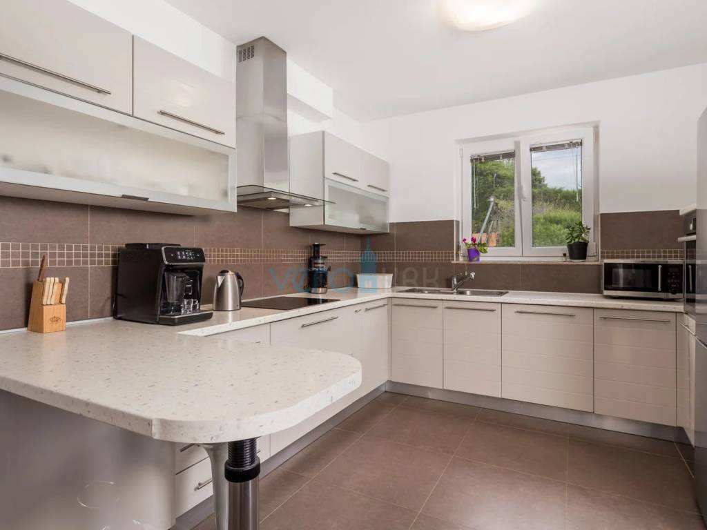 Kroz 192 m2 stambenog prostora, ova elegantna vila obnovljena 2024. godine obuhvaća prostrani unutarnji prostor s pet spavaćih soba, četiri za dvije osobe i jedna za jednu osobu. Tu su dvije kupaonice – jedna s tušem, a druga sa hidromasažnom kadom te još jedan odvojeni toalet. Praktična kuhinja opremljena je kvalitetnim aparatima, nastavlja se na posebno atraktivan dio za blagovanje sa lijepim pogledom na more. Open space blagovaonskog prostora nastavlja se na dnevni boravak s pametnim 4K UHD televizorom, Hi-Fi sustavom i Bluetooth playerom. Vila također ima saunu (ClearLight IR sauna ) i fitness prostoriju opremljenu modernim spravama za vježbanje. Kroz cijelu kuću je provedeno podno grijanje, te centralno grijanje na pelete. Postavljena su dva klima uređaja sa funkcijama grijanje/hlađenje.