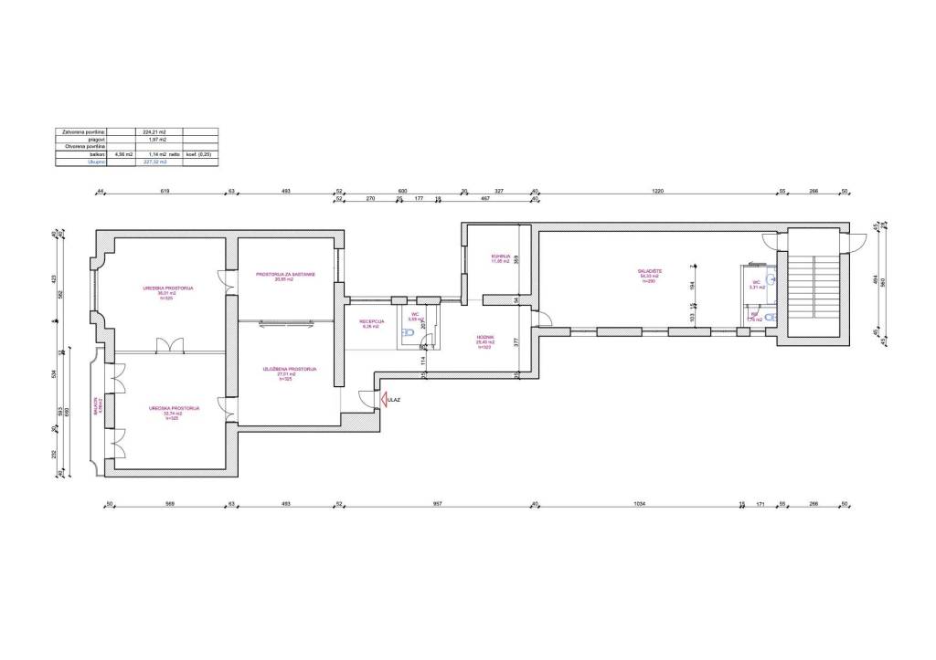 Ilica, poslovno-stambeni prostor ukupne površine 227.32 m², smješten u samoj pješačkoj zoni i u neposrednoj blizini Trga bana Jelačića, na drugom katu prekrasne i iznimno održavane zgrade, s mogućnošću parkinga u dvorištu.Potpuno je adaptiran i trenutno uređen za poslovne svrhe: izvedena je betonska deka, postavljen epoksi pod, nova vanjska i unutarnja stolarija, podno grijanje, te je u potpunosti klimatiziran.Odlikuju ga izvrsna tlocrtna raspodjela, visoki stropovi, obilje prirodnog svjetla i reprezentativan ulaz, što ga čini idealnim izborom za uredske, konzultantske, medicinske ili druge poslovne djelatnosti.Po potrebi, prostor se može jednostavno prenamijeniti u prostrani luksuzni stambeni prostor.