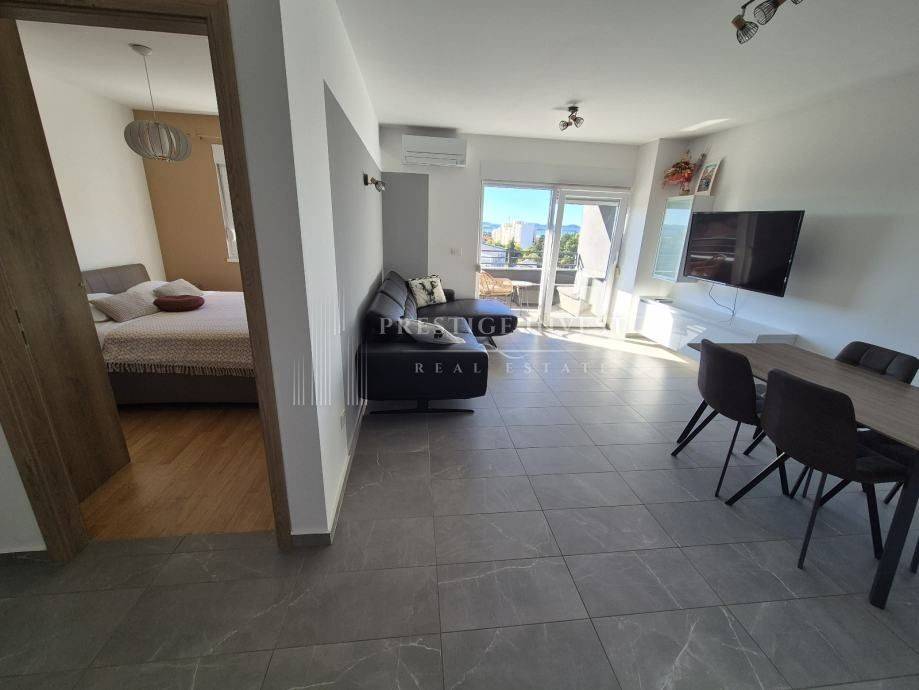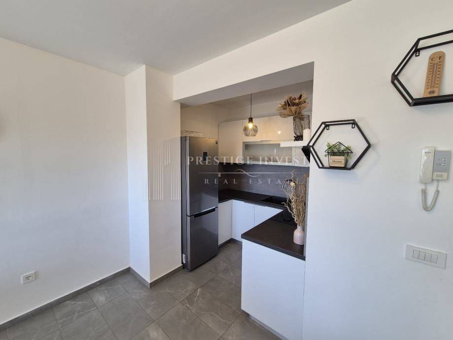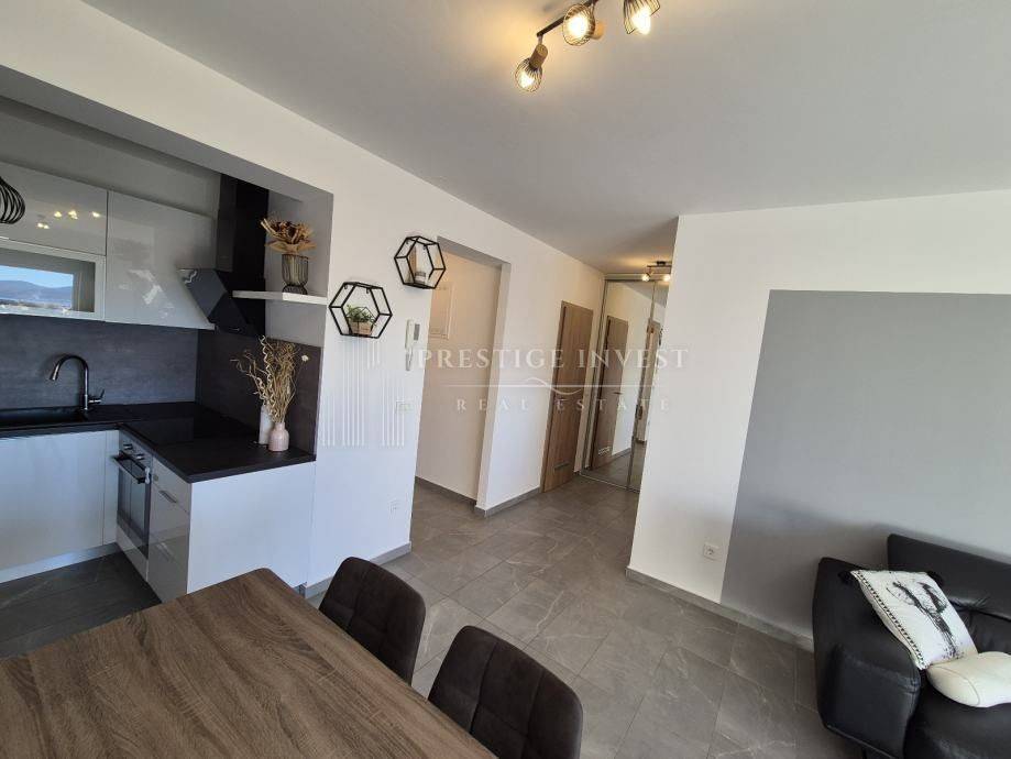 Na prodaju je moderan i namješten jednosoban stan u novogradnji, smješten na mirnoj lokaciji s prekrasnim otvorenim pogledom na more koji se ne može zakloniti.