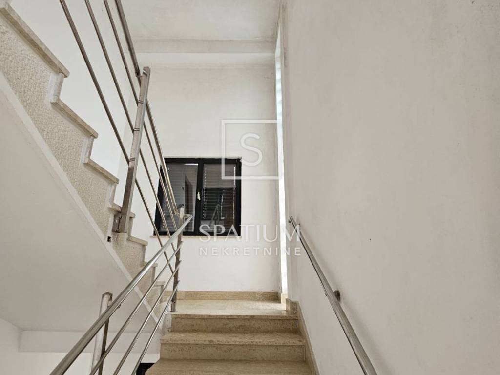 Kuća je podijeljena po etažama, a svaka etaža predstavlja zaseban stan površine 140 m². Predmet prodaje je etaža smještena na 1. katu.
