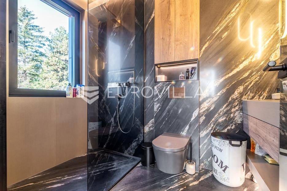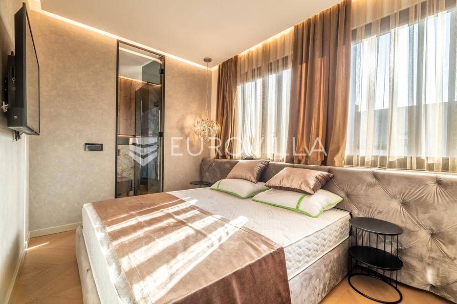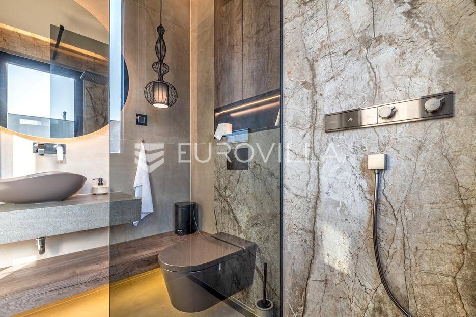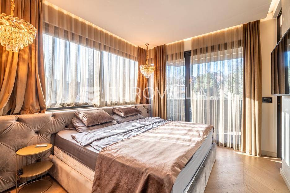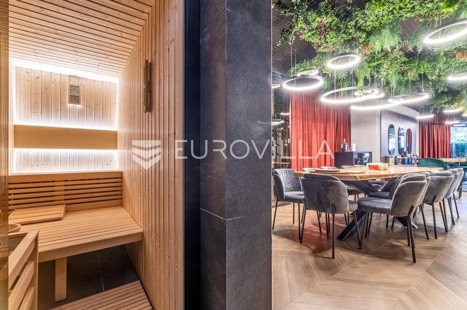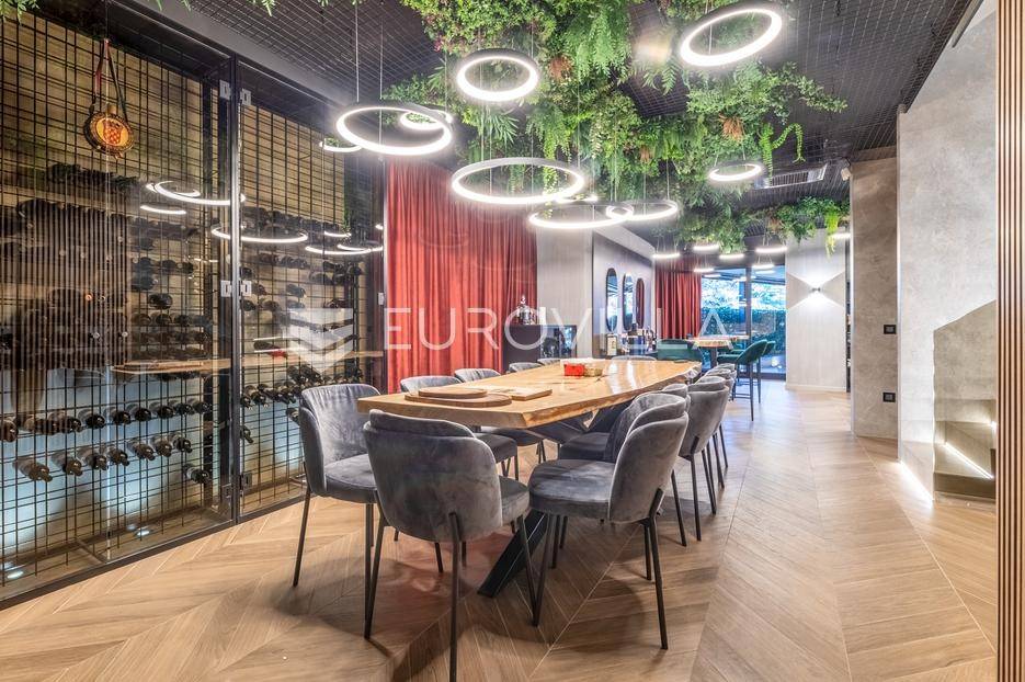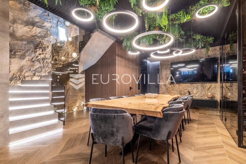 Srebrnjak, NOVOGRADNJA, ekskluzivna luksuzna villa projektirana prema najvišim građevinskim standardima zatvorene površine 185,00 m2 na jednoj od najljepših mikrolokacija u centru grada.Izgrađena na 3 etaže koje su međusobno povezane unutarnjim stubištem i liftom. Podrum: prostor za druženje s izlazom na prostranu terasu s jacuzzijem, kupaonica, sauna i gospodarstvo. Prizemlje: dnevni boravak, kuhinja i blagovaonica otvorenog tlocrta, garderoba. Prvi kat: hodnik, dvije spavaće sobe s kupaonicama, master soba s kupaonicom i garderobom, loggia 9,10 m2. Pripada joj dvorište s natkrivenim parkingom za dva vozila. Ukupno obračunski NKP 245,90 m2.Prodaje se potpuno namještena i opremljena. Visoko kvalitetna oprema: aluminij stolarija (troslojno izo staklo), protuprovalna ulazna vrata, vrhunska keramika i sanitarna oprema, podno grijanje kroz cijeli prostor ville, električne rolete, dizalica topline, rekuperatori zraka, sve skrivene stropne jedinice, smart rasvjeta, alarm, kamere…Vrlo dobro prometno povezano autobusnim i tramvajskim linijama koja je u blizini sa svim dijelovima grada. U blizini lokacije je gradski vrtić i osnovna škola, tržnica Kvatrić, dom zdravlja, pošta, ljekarne, trgovine i sve potrebno za kvalitetan obiteljski život.Sve ostale informacije na upit.