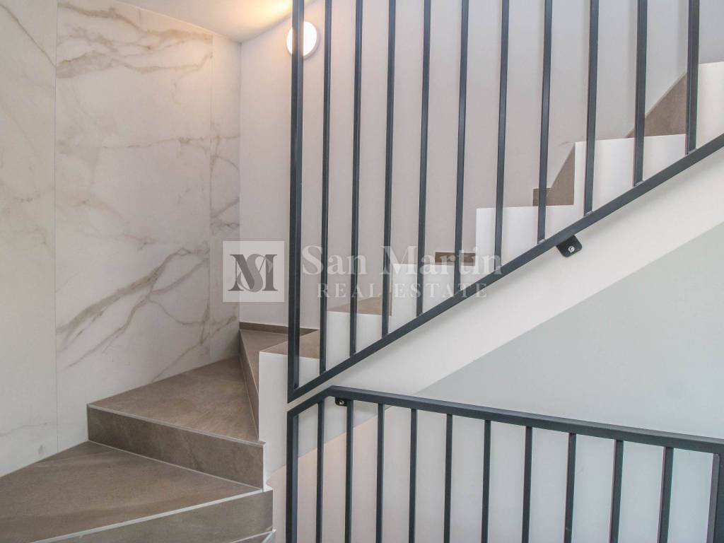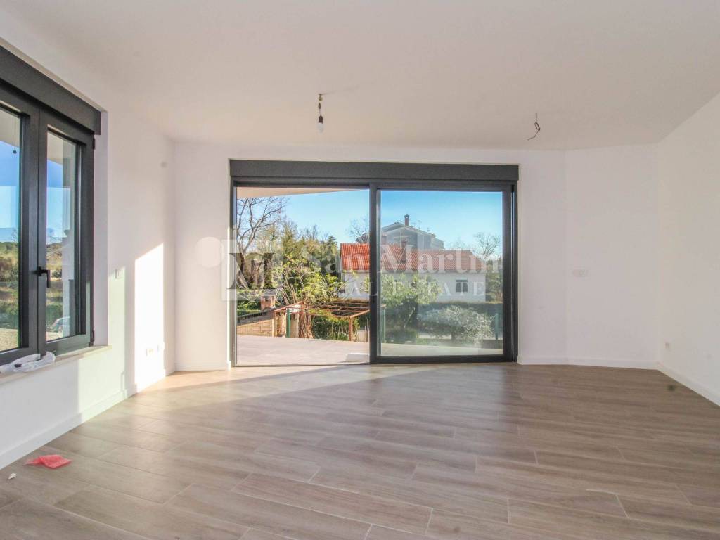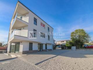 U prizemlju moderne zgrade svega 500 metara od mora prodaje se ova nekretnina ukupne površine 87,02 m2. Ovaj prostoran stan se sastoji od dnevnog boravka, kuhinje i blagovaone iz kojih kroz velika staklena vrata se izlazi u vlastiti vrt. Stan ima i dvije spavaće sobe sa opremljenim kupaonama. Ovoj nekretnini pripadaju ostava i parkirno mjesto ispred zgrade.