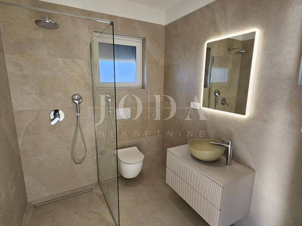 Na samo 200 metara od mora ekluzivno prodajemo stanove u novogradnji provjerenog investitora. Odličan raspored stanova sa dvije spavaće sobe,kupaonicom,otvorenim konceptom dnevnog boravka i kuhinje te velike loggie sa panoramskim pogledom na more. Podno grijanje,visokokvalitetna stolarija i keramika,provjereni investitor sa mogućnošću provjere već izvedenig stambenig zgrada.