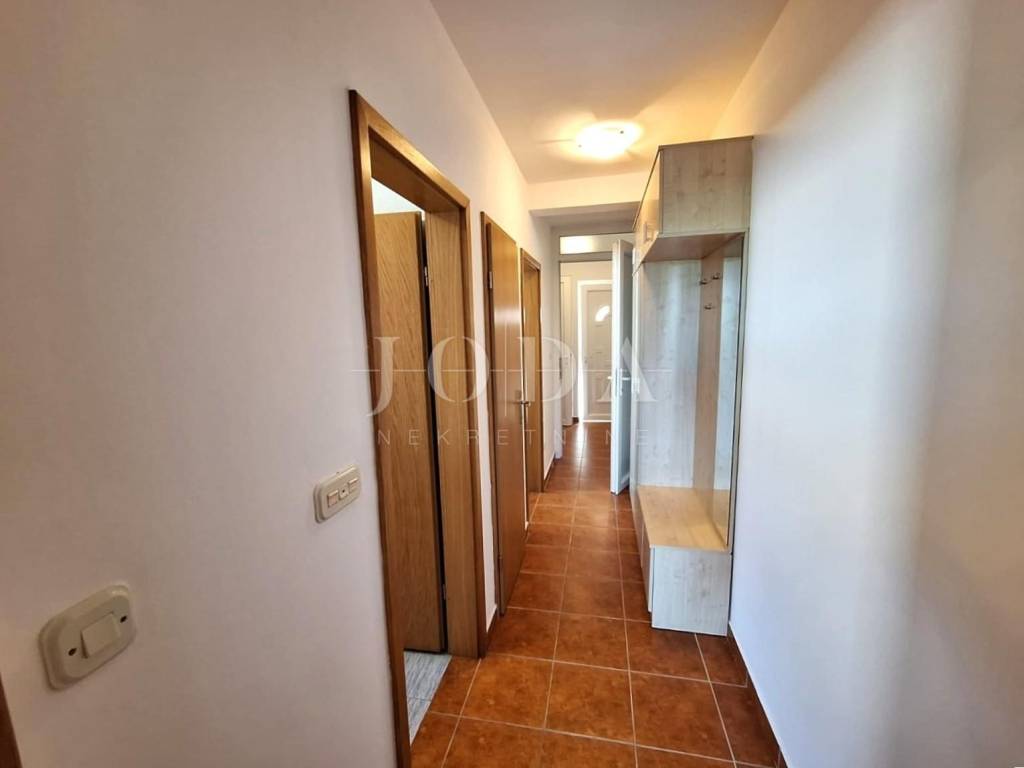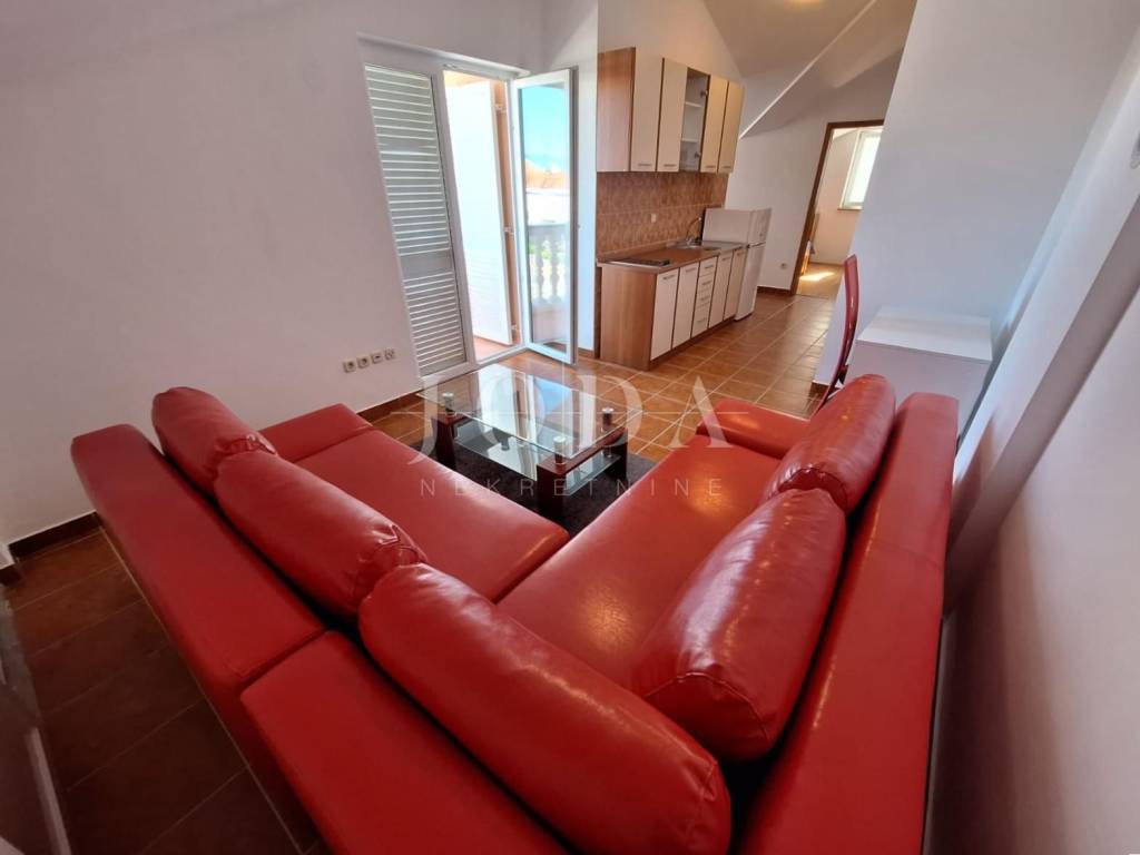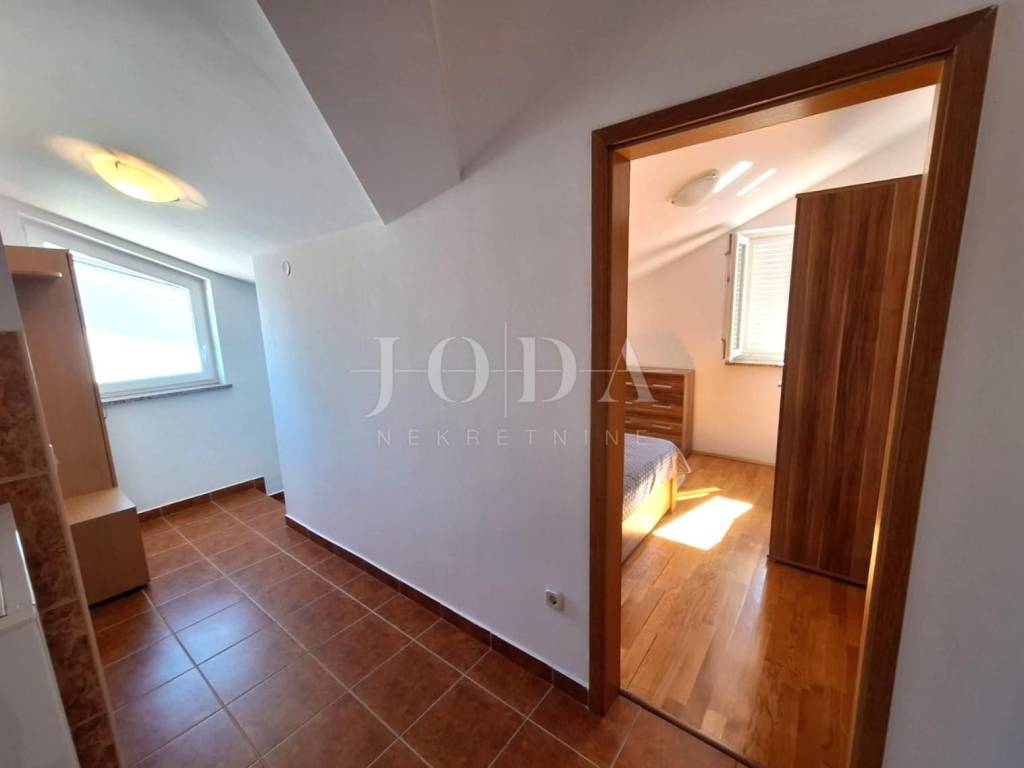 Malinska, prodaje se nekretnina površine 93,83 m2, u naravi dva jednosobna apartmana. Stan na prvom katu se sastoji od jedne spavaće sobe, dnevnog boravka, kuhinje i blagovaone, hodnika, ostave i balkona. Stan u potkrovlju se sastoji od jedne spavaće sobe, hodnika, kupaone, kuhinje, dnevnog boravka, balkona i spremišta.