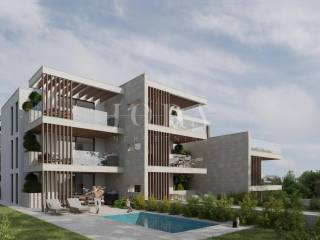 Grad Krk, građevinsko zemljište s pogledom na more. Za zemljište je napravljen idejni projekt za luksuznu stambenu građevinu s četiri stana. Odlična lokacija, 500 metara do mora.