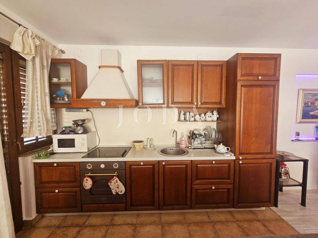 Apartman u prizemlju površine 71,40 m2 koji se sastoji od dvije spavaće sobe, dnevnog boravka s kuhinjom i blagovaonom, kupaone i terase. Stan ima lijepo uređenu okućnicu, jedno parkirno mjesto i odvojeno spremište.