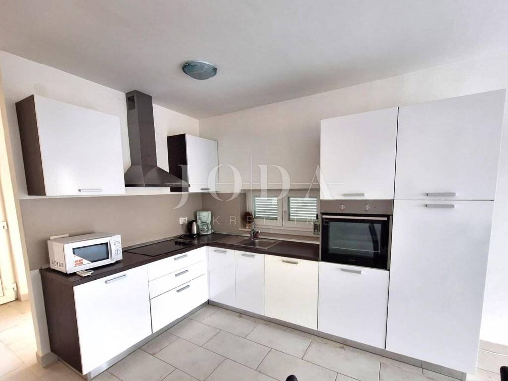 Prodaje se dvoetažni apartman površine 64,13 m2 s pripadajućom okućnicom od 200 m2 na kojoj se nalazi bazen. Apartman se sastoji od prizemlja i kata. U prizemlju je dnevni boravak s kuhinjom i blagovaonom, toalet i terasa. Na katu su dvije spavaće sobe, kupaona i terasa. Klimatizirano, namješteno. Na urednoj okućnici nalazi se bazen, roštilj i vrtna kućica. Lijepa lokacija 5 minuta vožnje udaljena od Malinske.