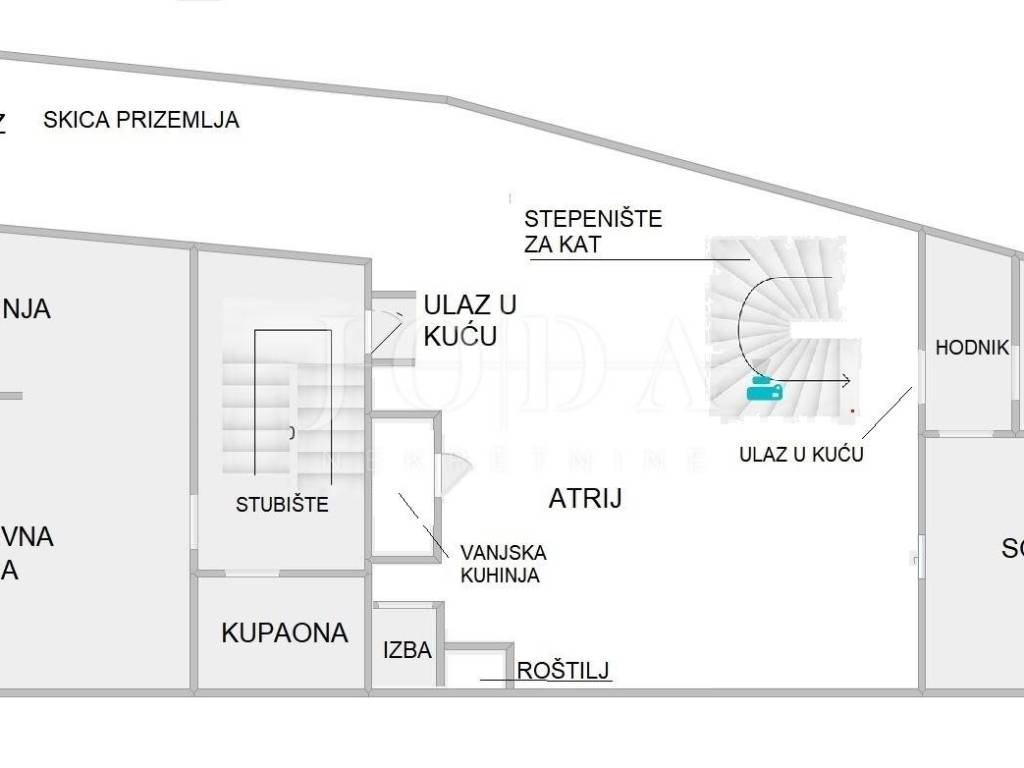 Vanjske stepenice vode do prostrane terase s koje se pruža prekrasan panoramski pogled na more.
