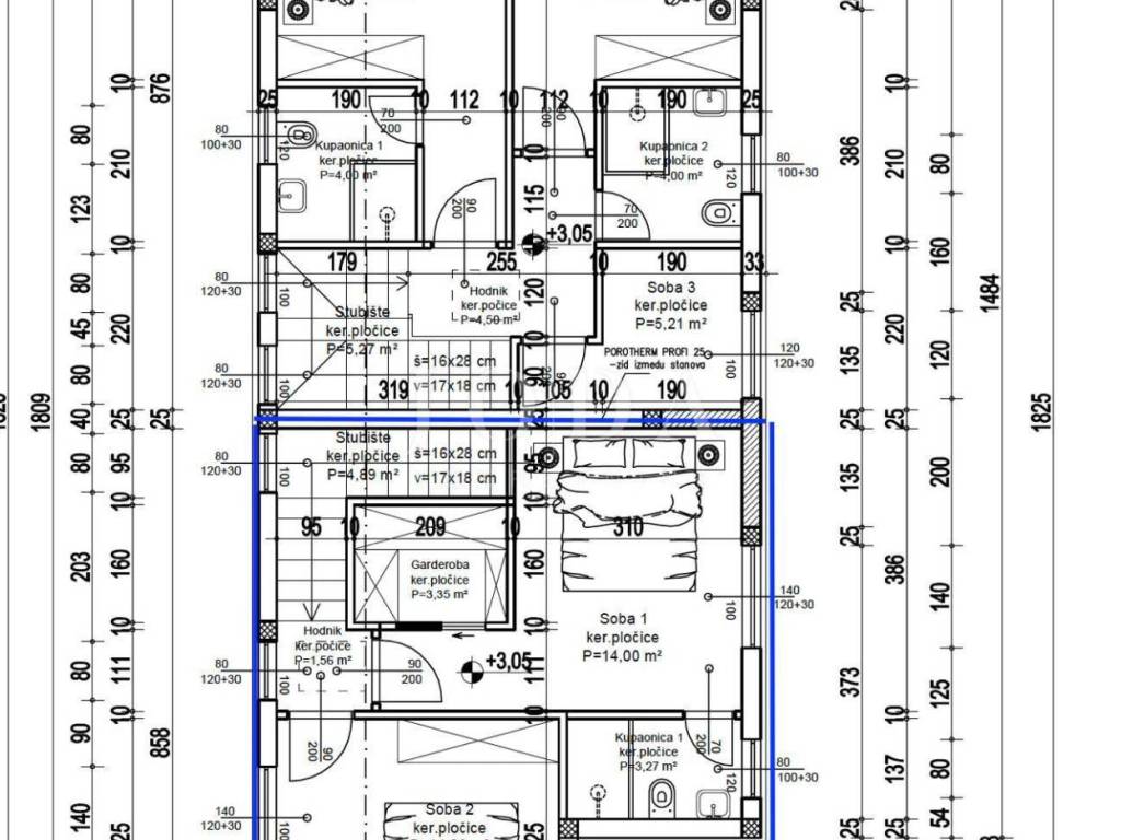Kuća stambene površine cca.125 m, proteže se na podrum, prizemlje i kat. Podrum površine 38,62 m se može urediti po želji. U prizemlju se nalazi hodnik, ostava, toalet, kuhinja s blagovaonicom i dnevnim boravkom i terasa s uređenom okućnicom. Stubište vodi na kat gdje se nalaze dvije spavaće sobe, svaka s vlastitom kupaonicom i garderoba. Na raspolaganju su dva vanjska parkirna mjesta.