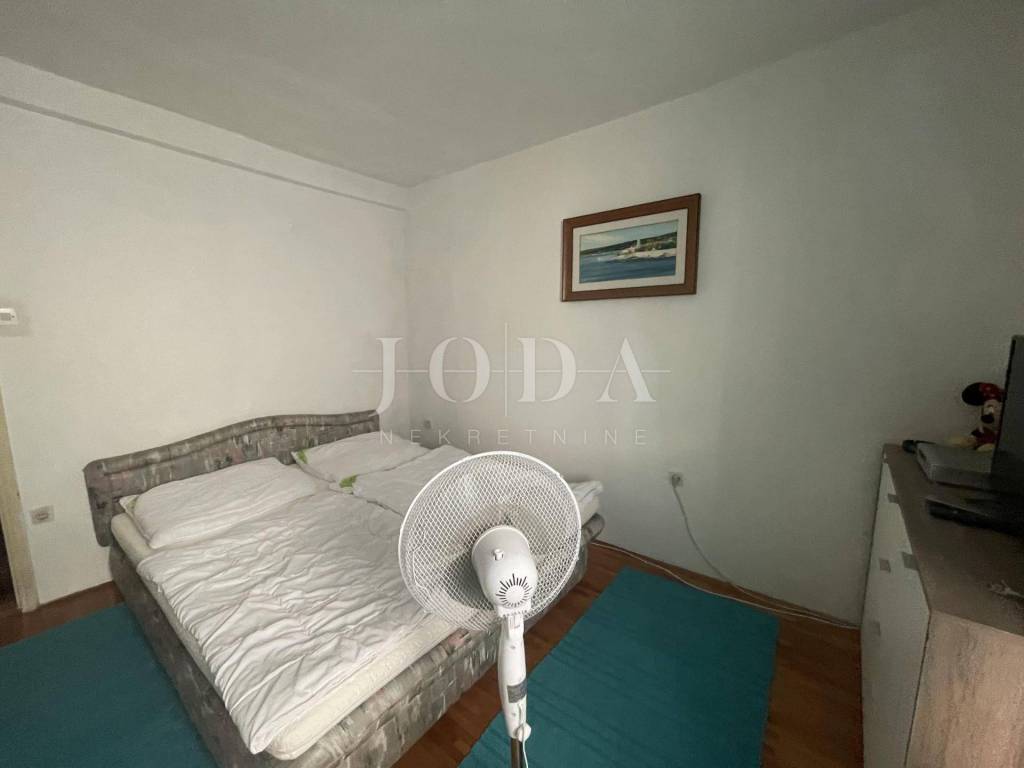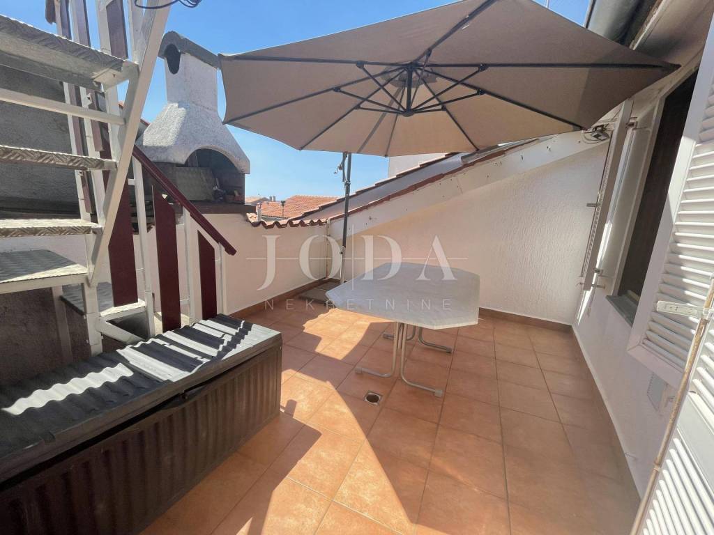 Krk - centar, višeetažni apartman ukupne površine 120 m2. U prizemlju je garsonjera - kuhinja s dnevnim boravkom i kupaonica. Stepenice vode na prvi kat gdje su dvije spavaće sobe i kupaonica. Na najvišoj etaži je dnevni boravak i kuhinja iz koje se izlazi na terasu s koje se pruža pogled na stari grad. Stepenice vode na krovnu terasu koja ima predivan pogled na more i stari grad. Pripada mu podrum veličine 15 m2. Zgrada je izgrađena 1920. godine. Prva renovacija bila je 1965. i zadnja 1985.godine. Apartman je u povijesnoj jezgri grada.