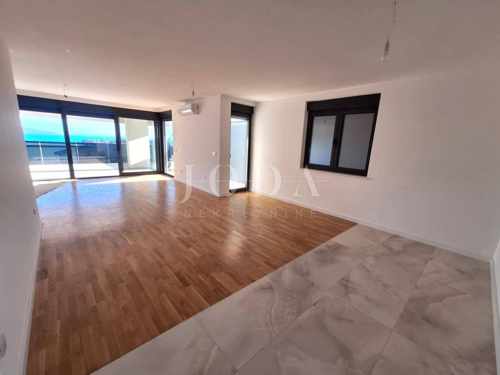 Apartman je podijeljen na dva kata i površine je 160 m2. Nalazi se na prvom i drugom katu. Na prvom katu se nalaze hodnik, tri spavaće sobe s izlazom na balkon s kojeg se pruža pogled na more te dvije kupaonice. Na drugom katu se nalaze prostrani dnevni boravak s izlazom na terasu, kuhinja i blagavaonica te toalet. Prvi i drugi kat su spojeni unutarnji stepeništem, a vanjskim stepeništem se dolazi na krovnu terasu površine cca 60 m2 gdje se nalazi bazen i sunčalište. Zgrada je izgrađena s najkvalitetnijim materijalima i apartmani su opremljeni klima uređajima, dizalicama topline, ALU stolarijom i prvoklasnim parketom i keramikom. Apartmanu pripadaju dva parkirna mjesto. Nekretnina se nalazi na izvanrednoj lokaciji udaljena cca 600 metara od mora i plaže.