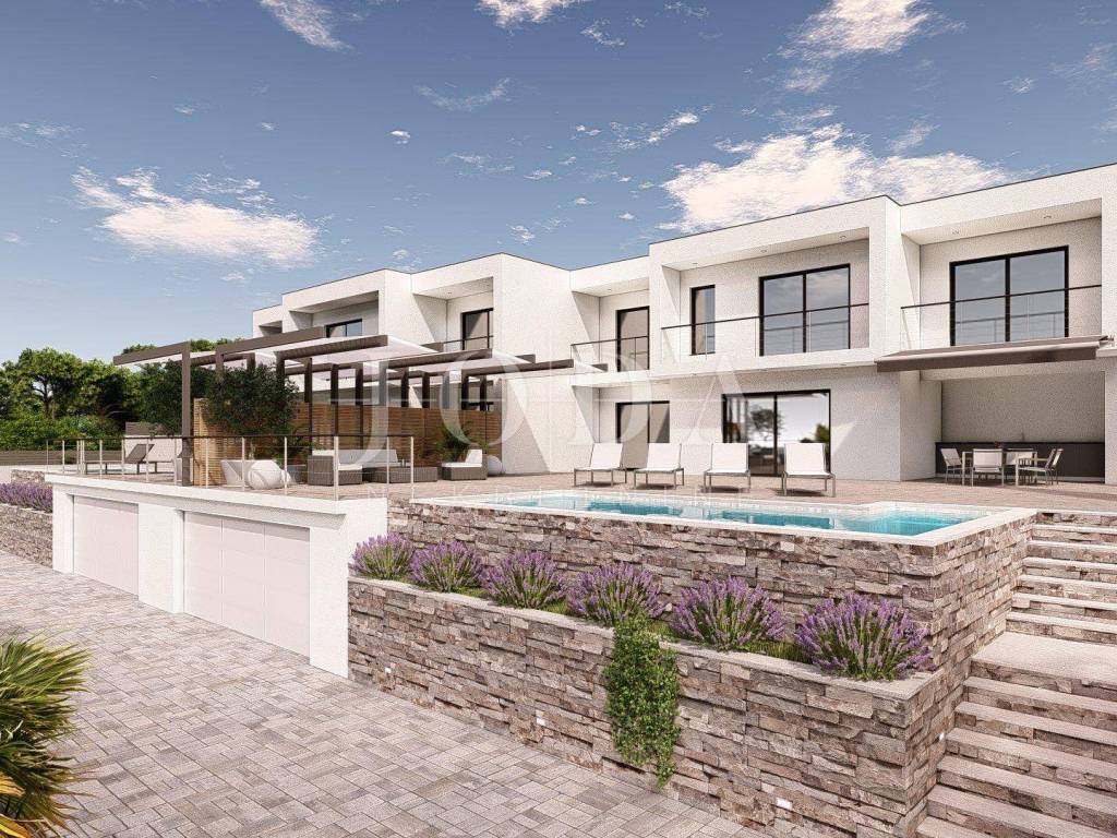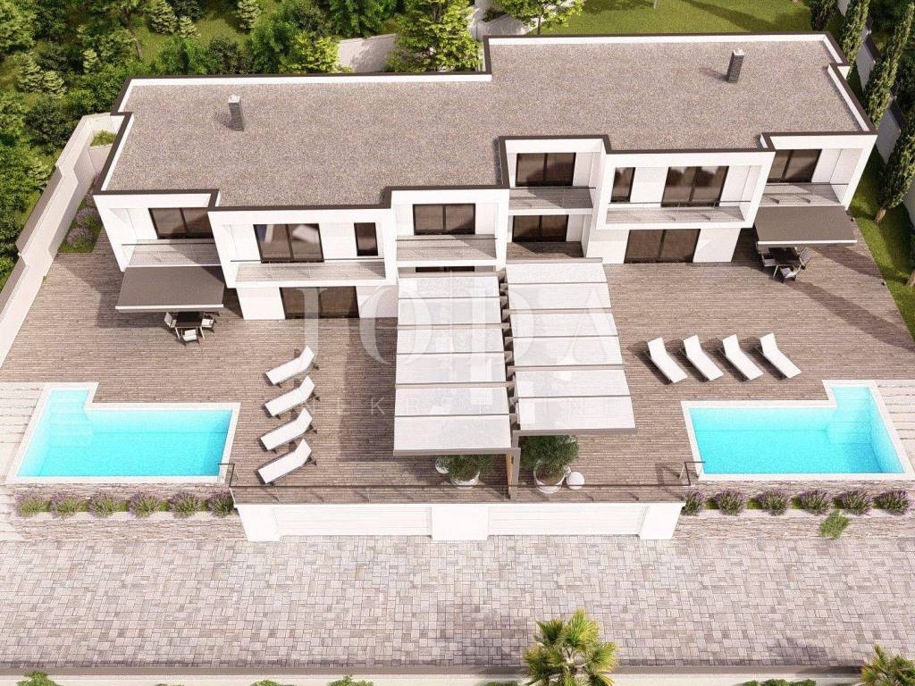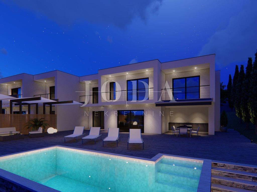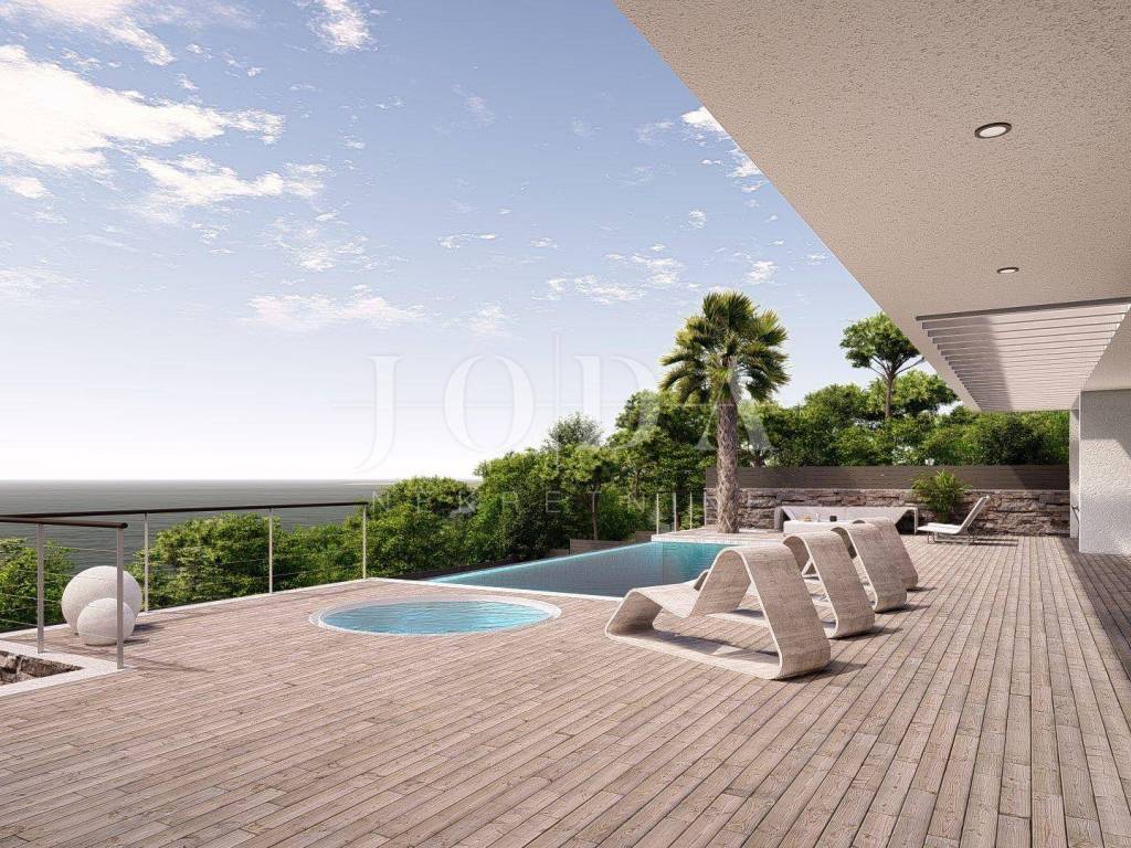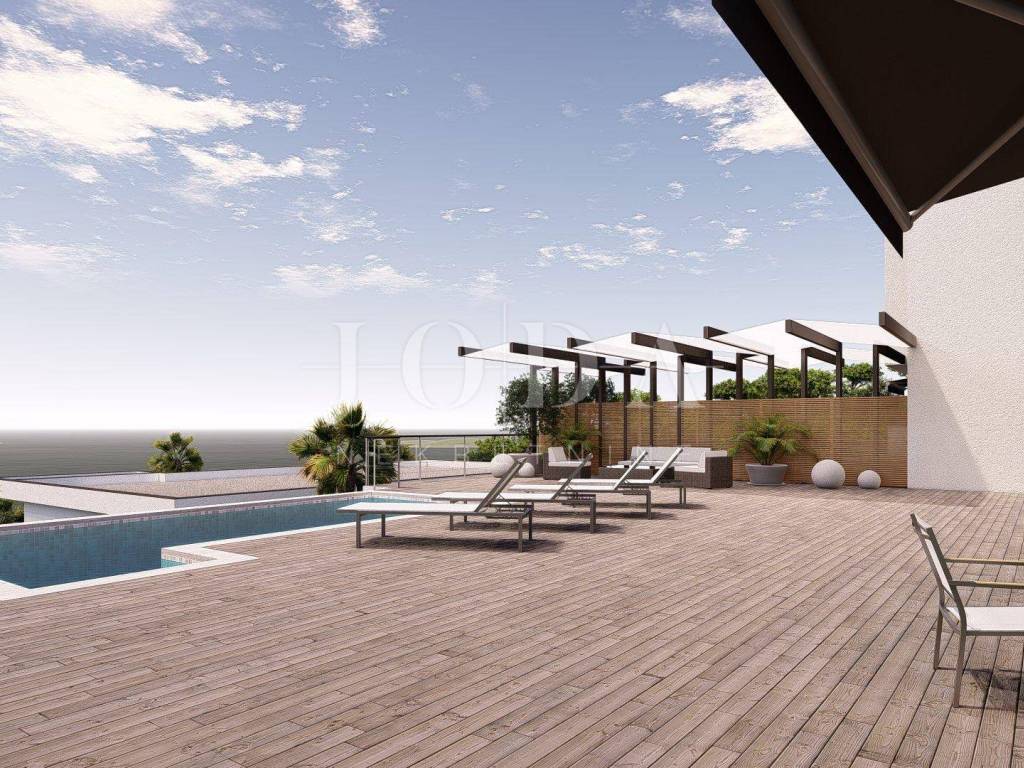 Iz cijelog prizemlja (što uključuje i bazen), a pogotovo sa kata, će se pružati panoramski pogled na grad, more i otok Krk koji nikada neće biti zaklonjen!