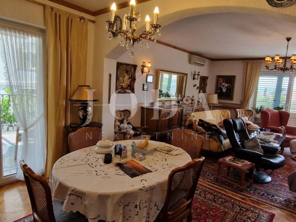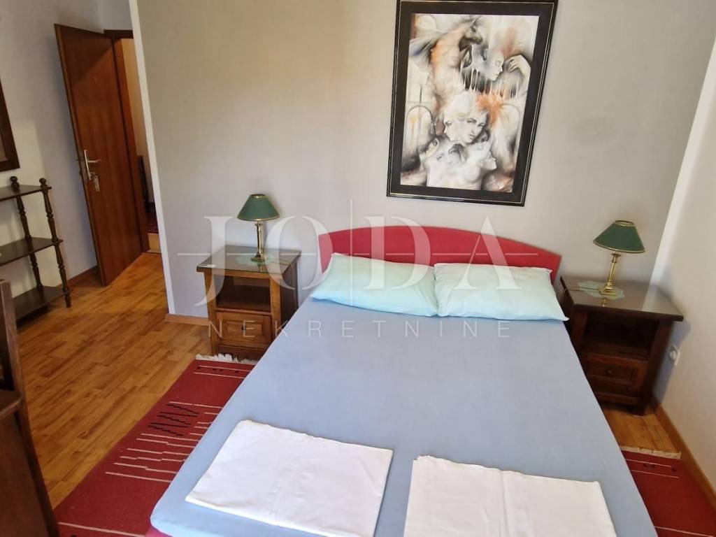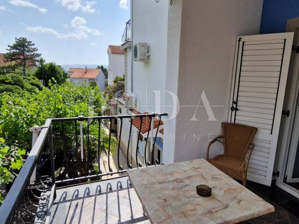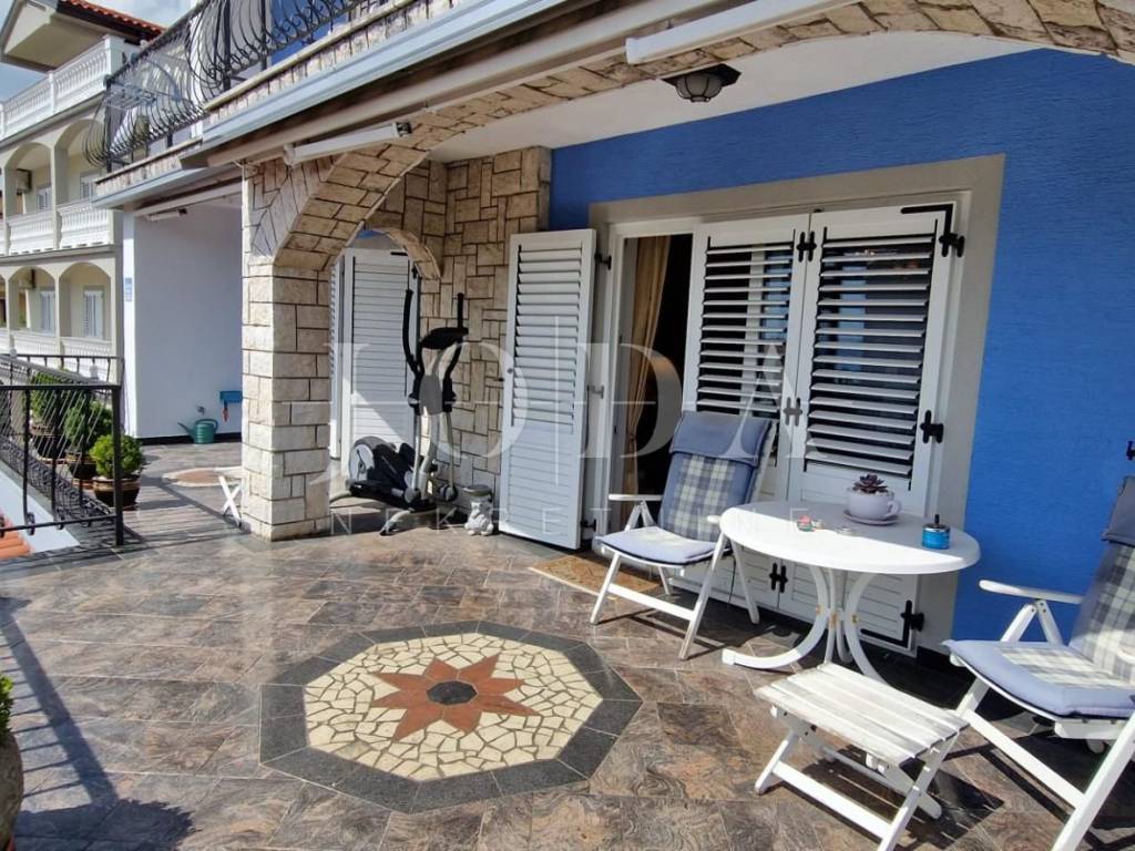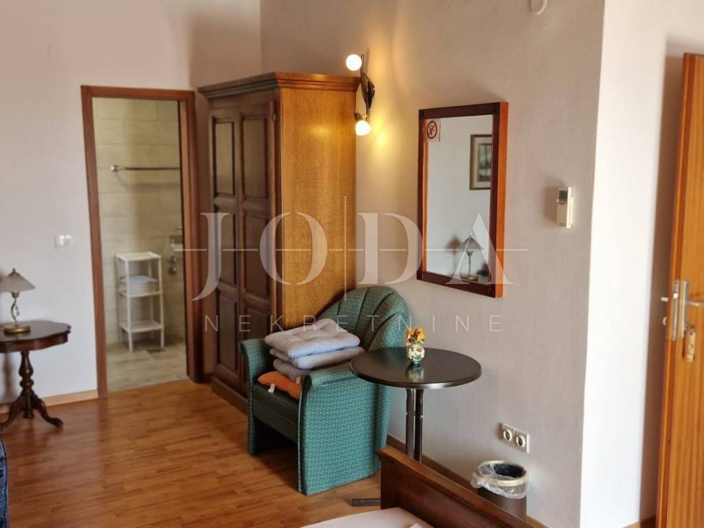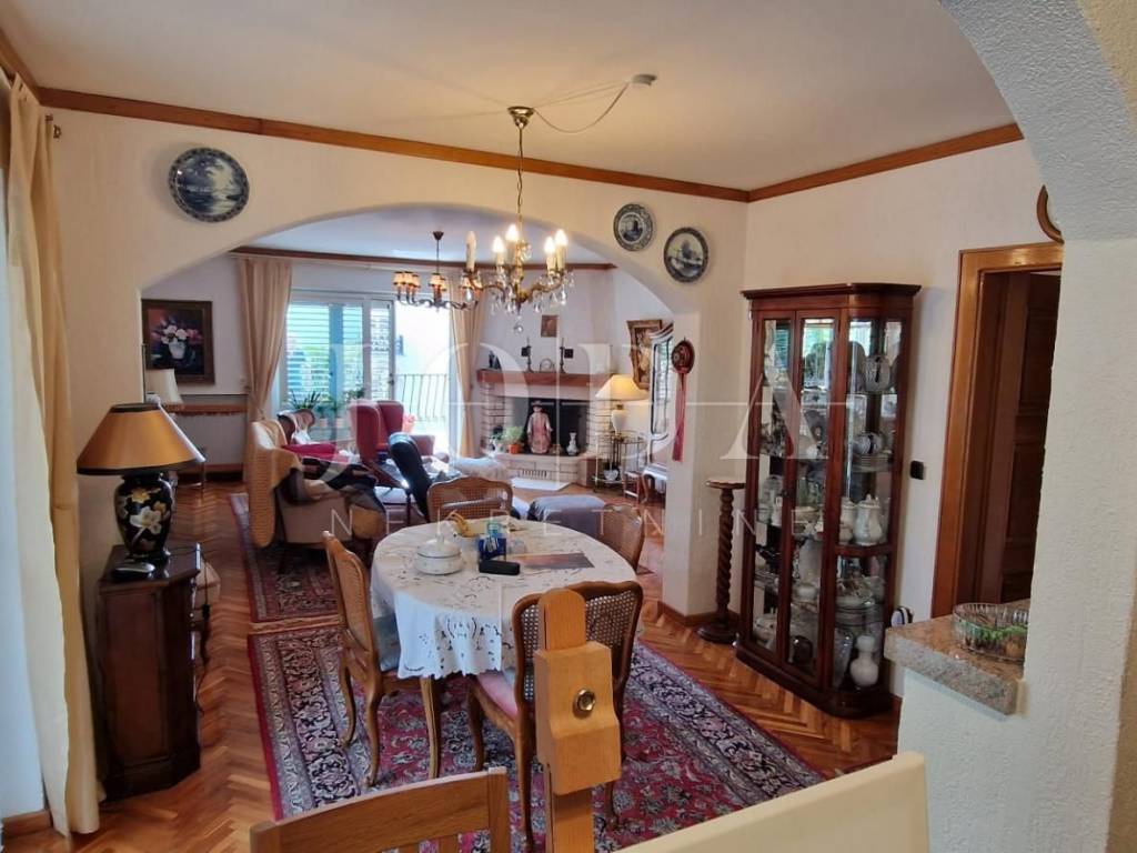 Prodajemo prekrasnu apartmansku villu na 4 etaže, udaljenu 300 m od mora. U prizemlju su 2 apartmana sa velikim terasama, kuhinja koja je dugi niz godina služila za spremanje doručka za goste, blagovaona i terasa koja može ugostiti 20 ljudi, zatim ostava sa praonicom rublja te kotlovnica sa sustavom grijanja i spremnikom za toplu vodu.