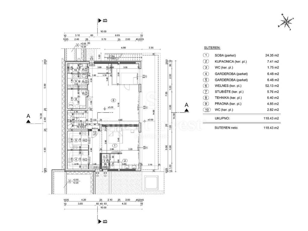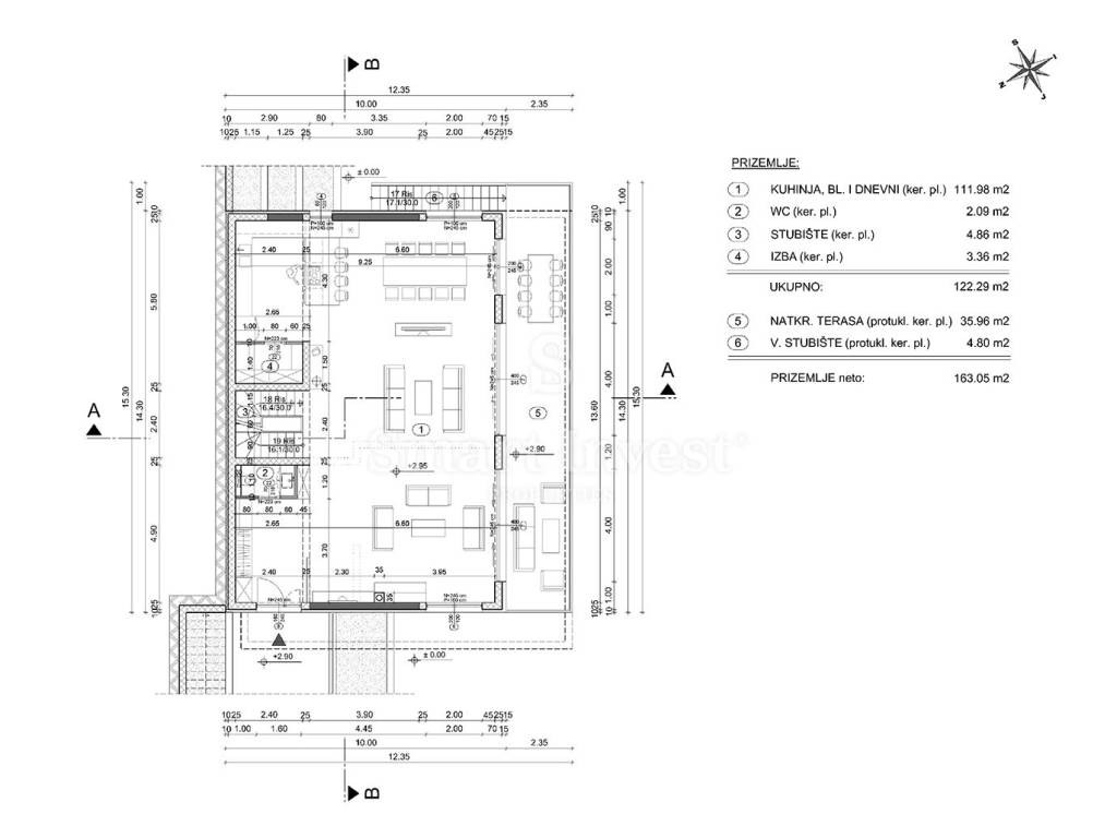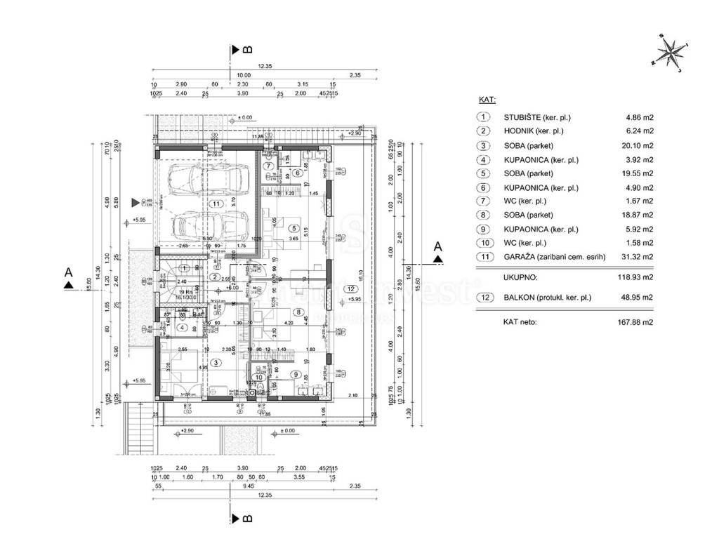 Građevinskom dozvolom je predviđena izgradnja vile neto površine 449,36 m2.