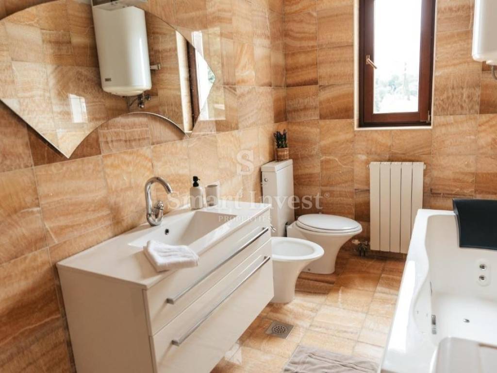 Vila je okružena prostranom lijepo uređenom i njegovanom okućnicom, a na raspolaganju su vam i prekrasni bazen sa sunčalištem, vanjski roštilj, sauna te natrkiveni parking za više vozila.