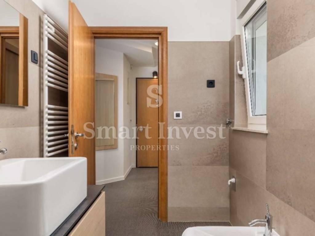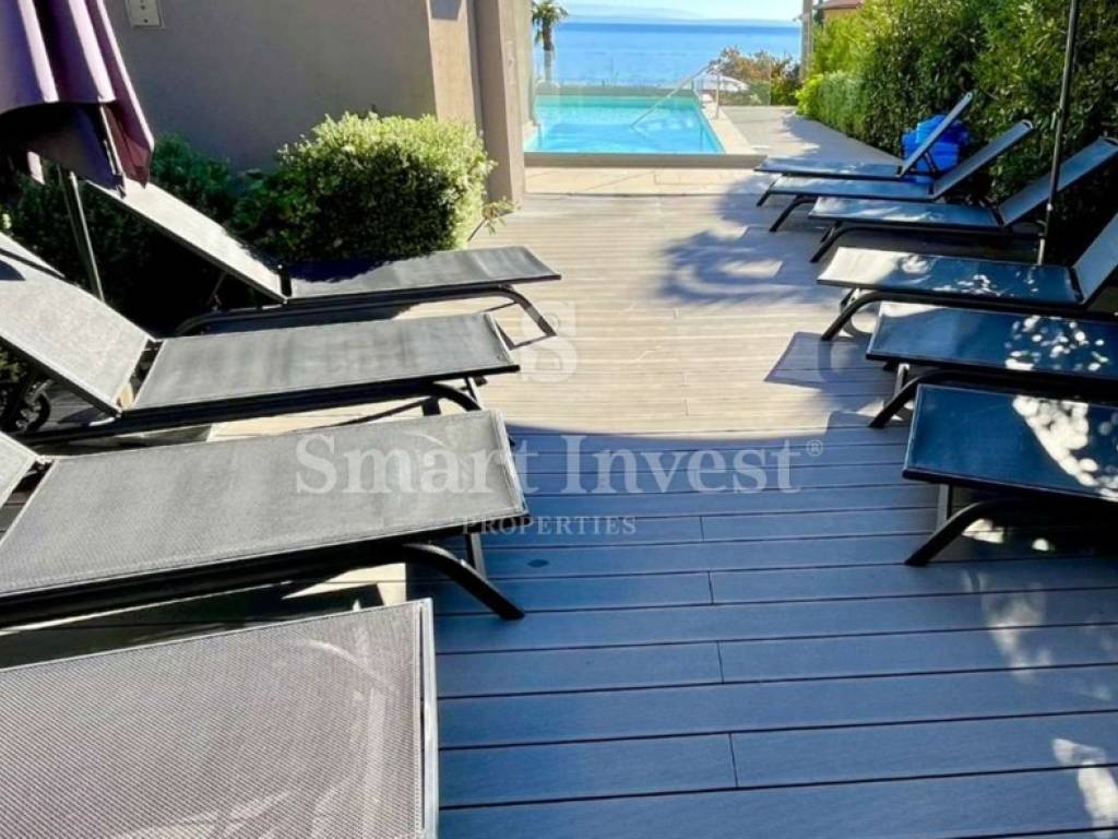 Dugoročno se iznajmljuje moderan, luksuzno opremljen i namješten stan u višestambenoj zgradi s dizalom i bazenom, na prekrasnoj lokaciji uz more.